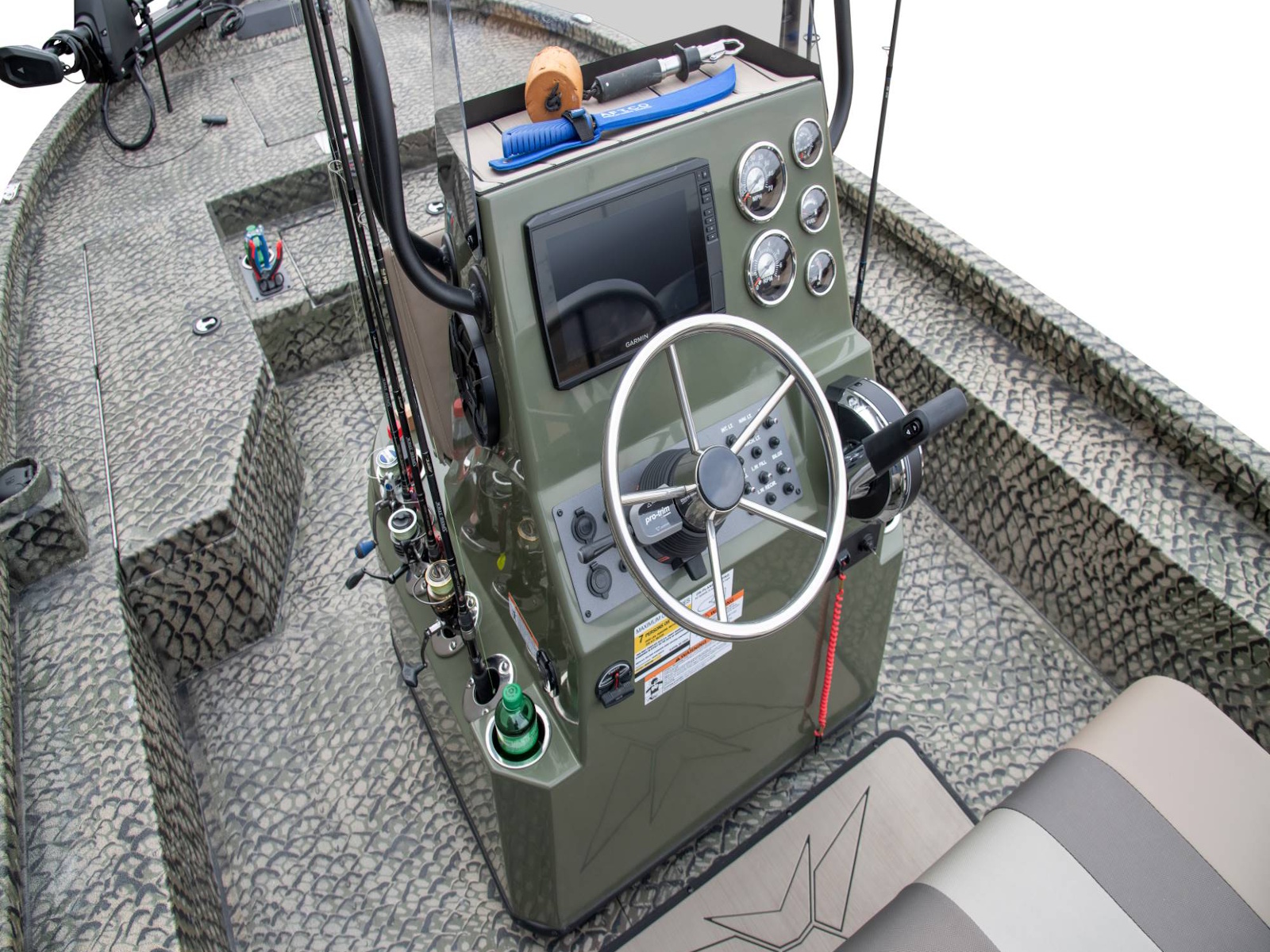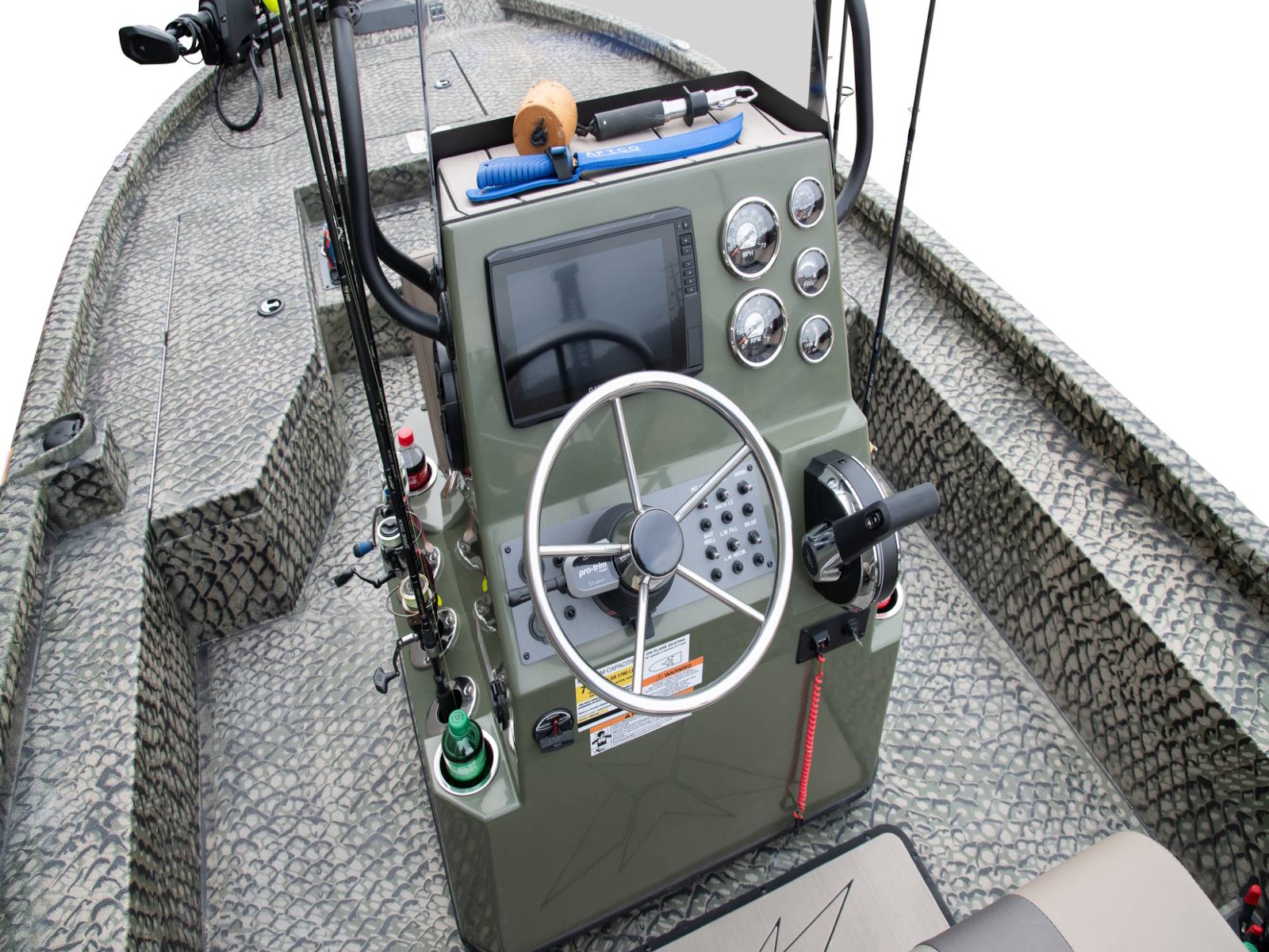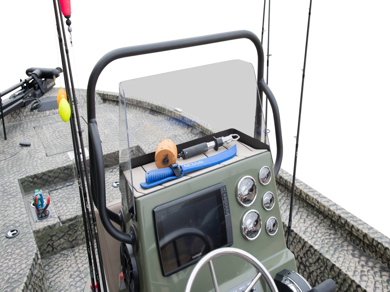 - Fiberglass Console with Integrated Rod Storage and LED Lit Toe Rail