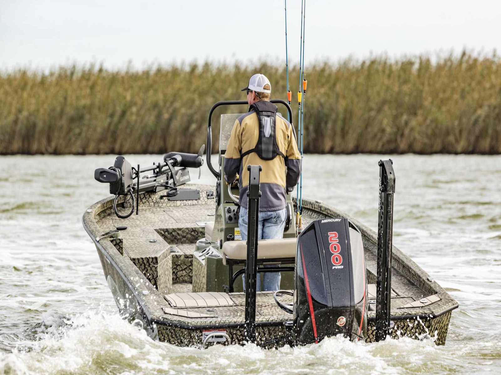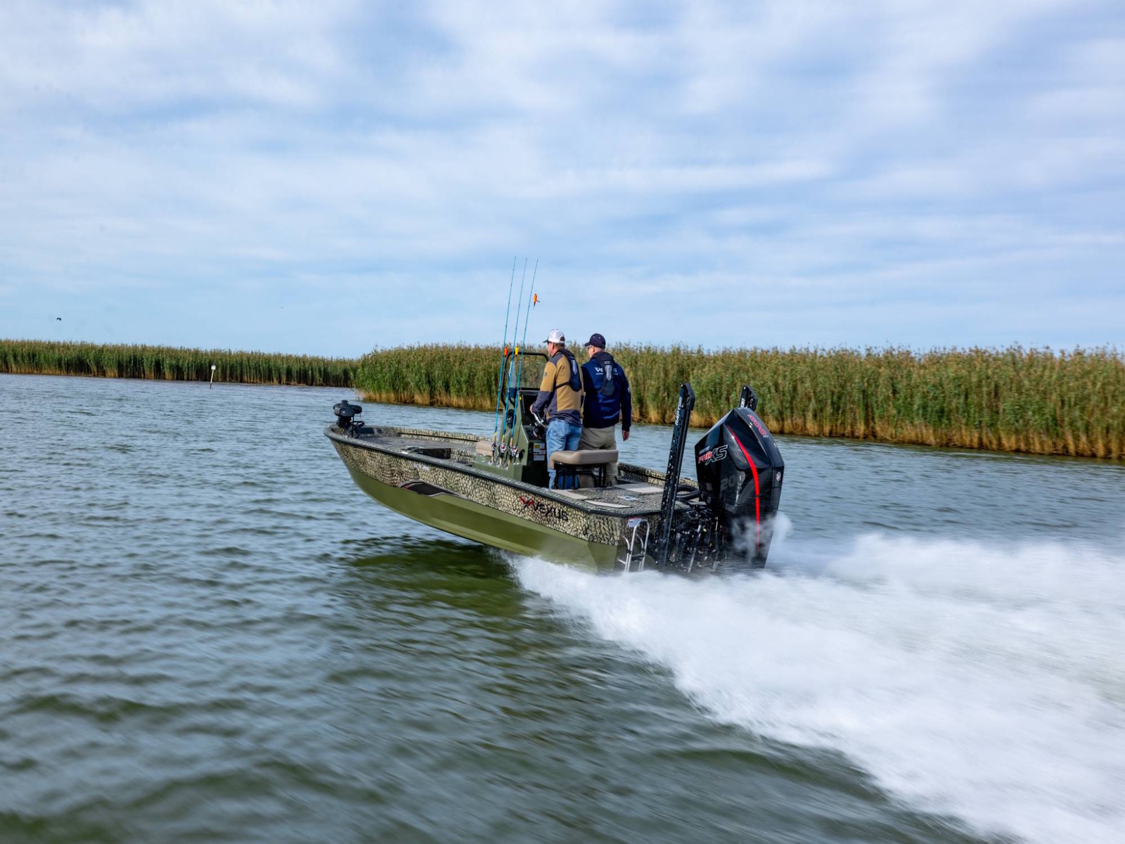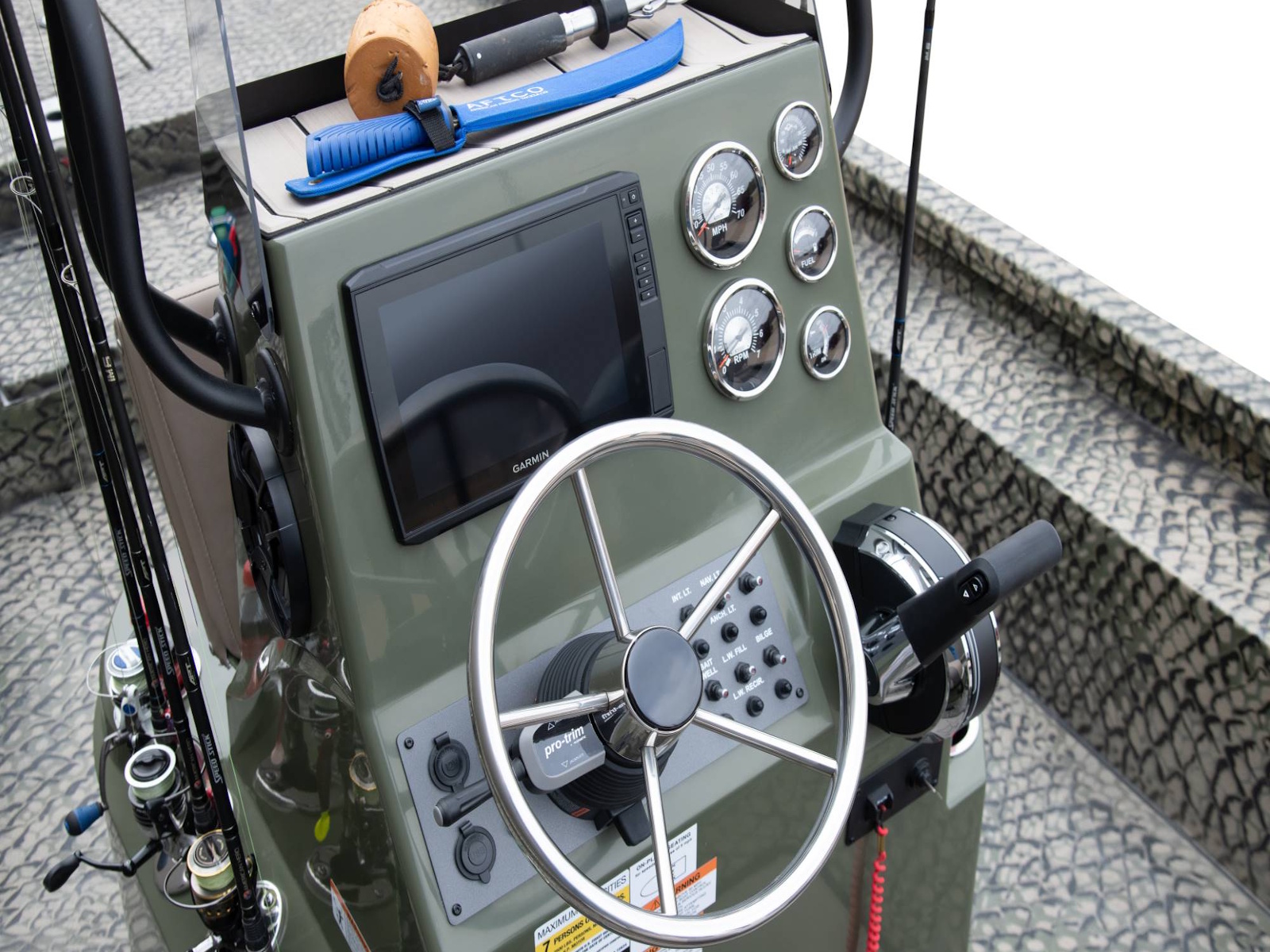 You won't see us offering base-level equipment that keeps the starting price artificially low. As avid anglers ourselves, we package the boats like we would want them. You'll find our entire lineup has a stainless-steel propeller, stainless boarding ladder, smooth hydraulic steering, an onboard charger, and a proven Minn Kota trolling motor built into the price.
