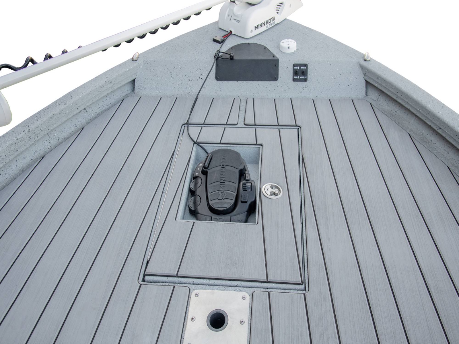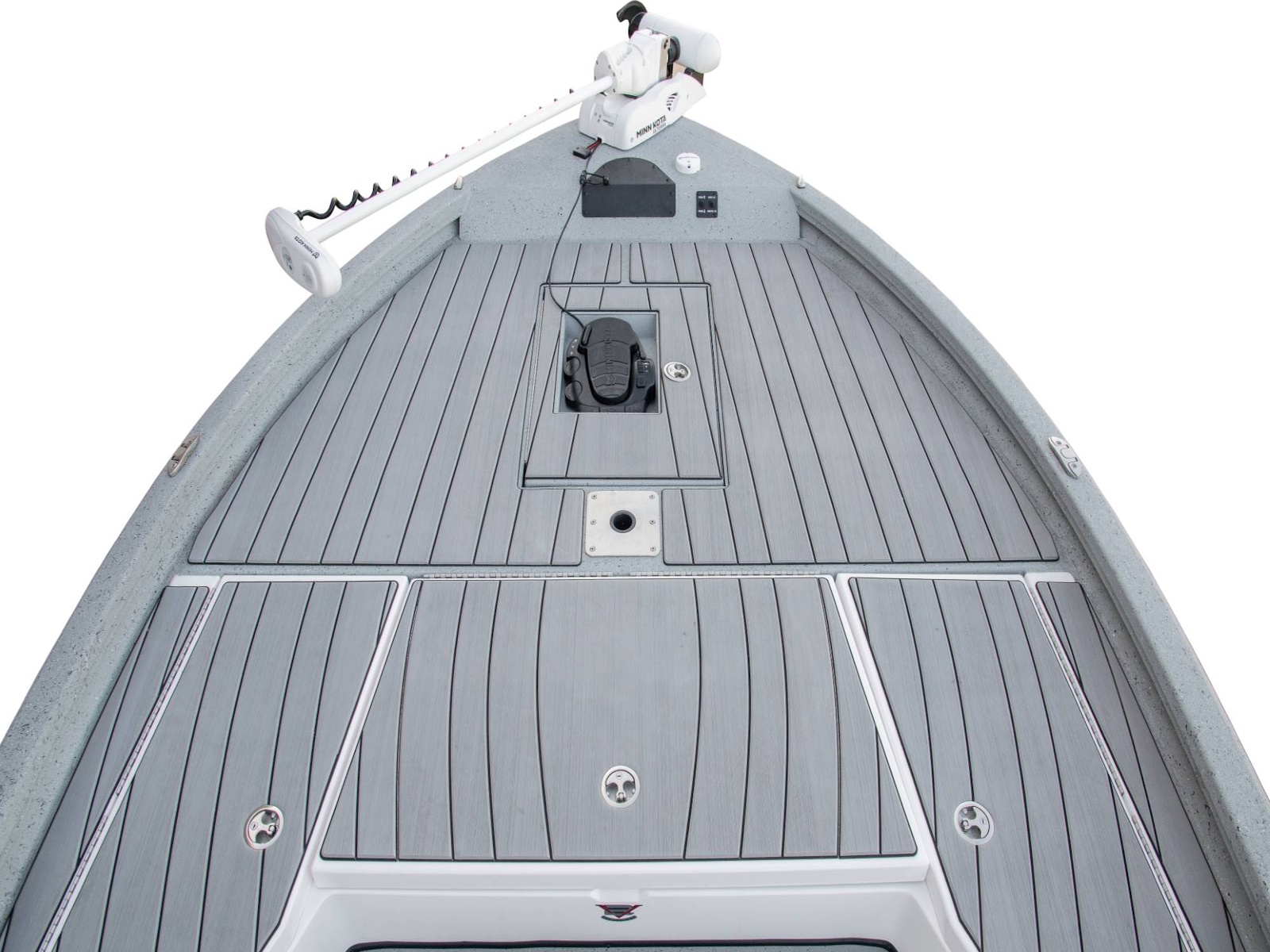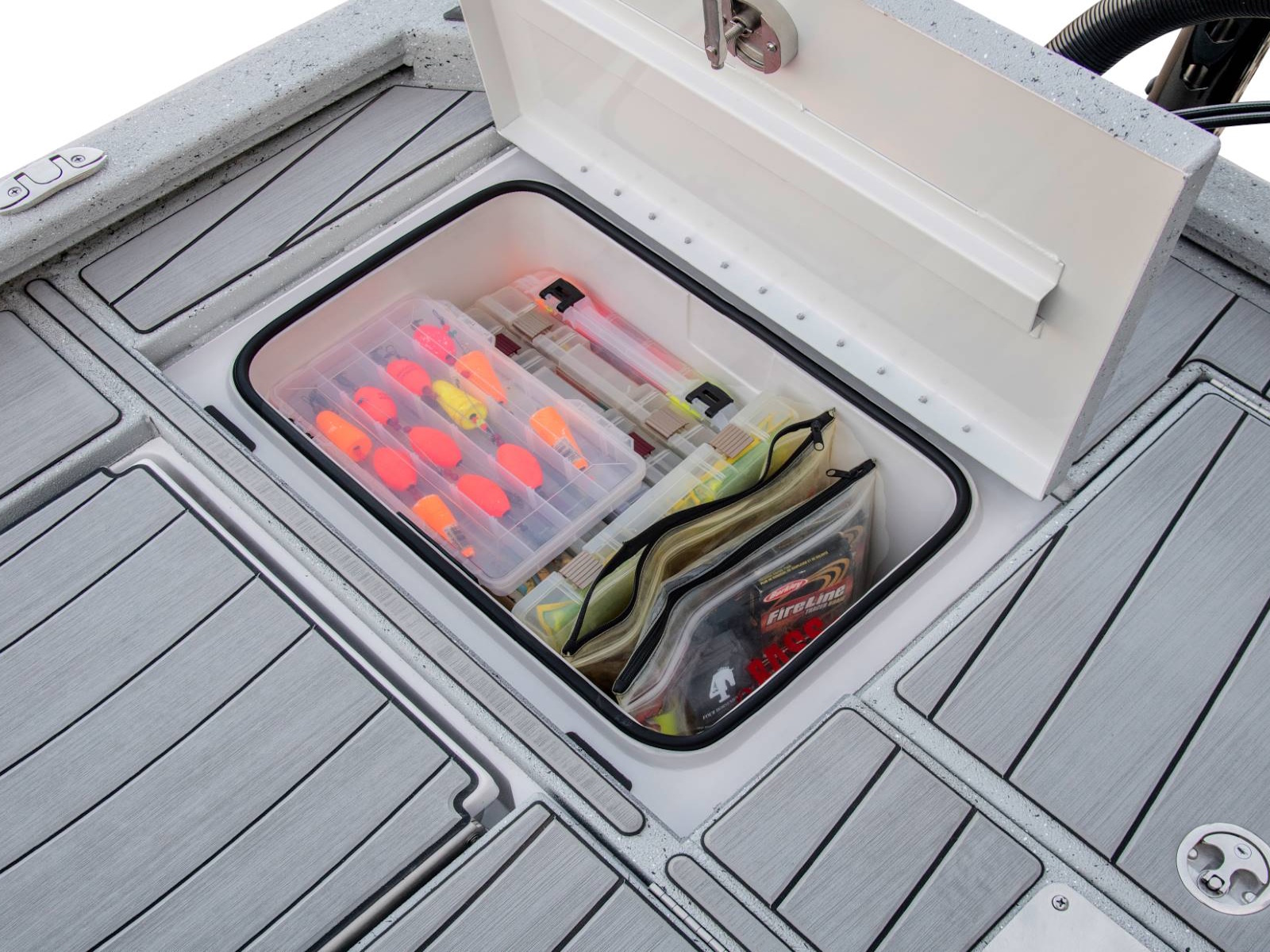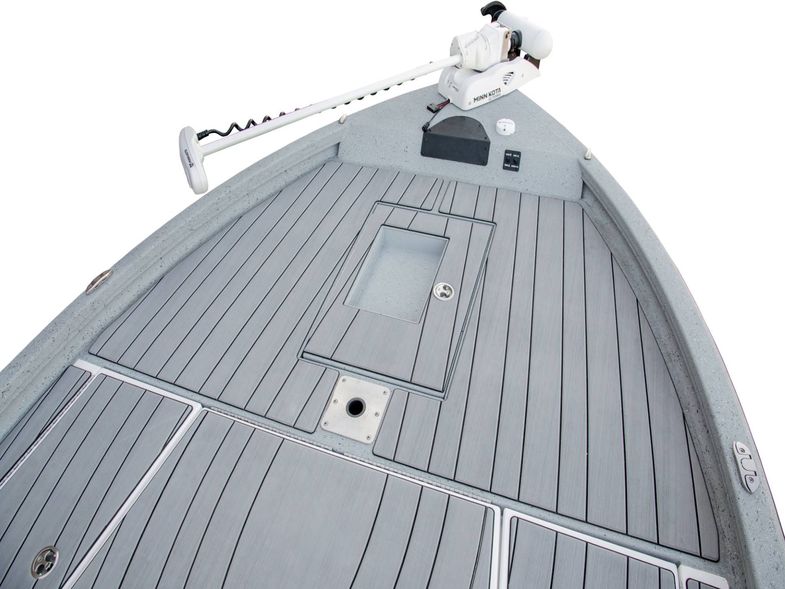 Our Tru-Trek™ floor surface is a tread-gripping polyurea bond that's ultra-durable and easy to clean. By replacing carpet, it allows the angler to confidently venture into salt or brackish waters. *Photo shows our polyurea flooring (standard) with the optional ReFlex flooring added.
