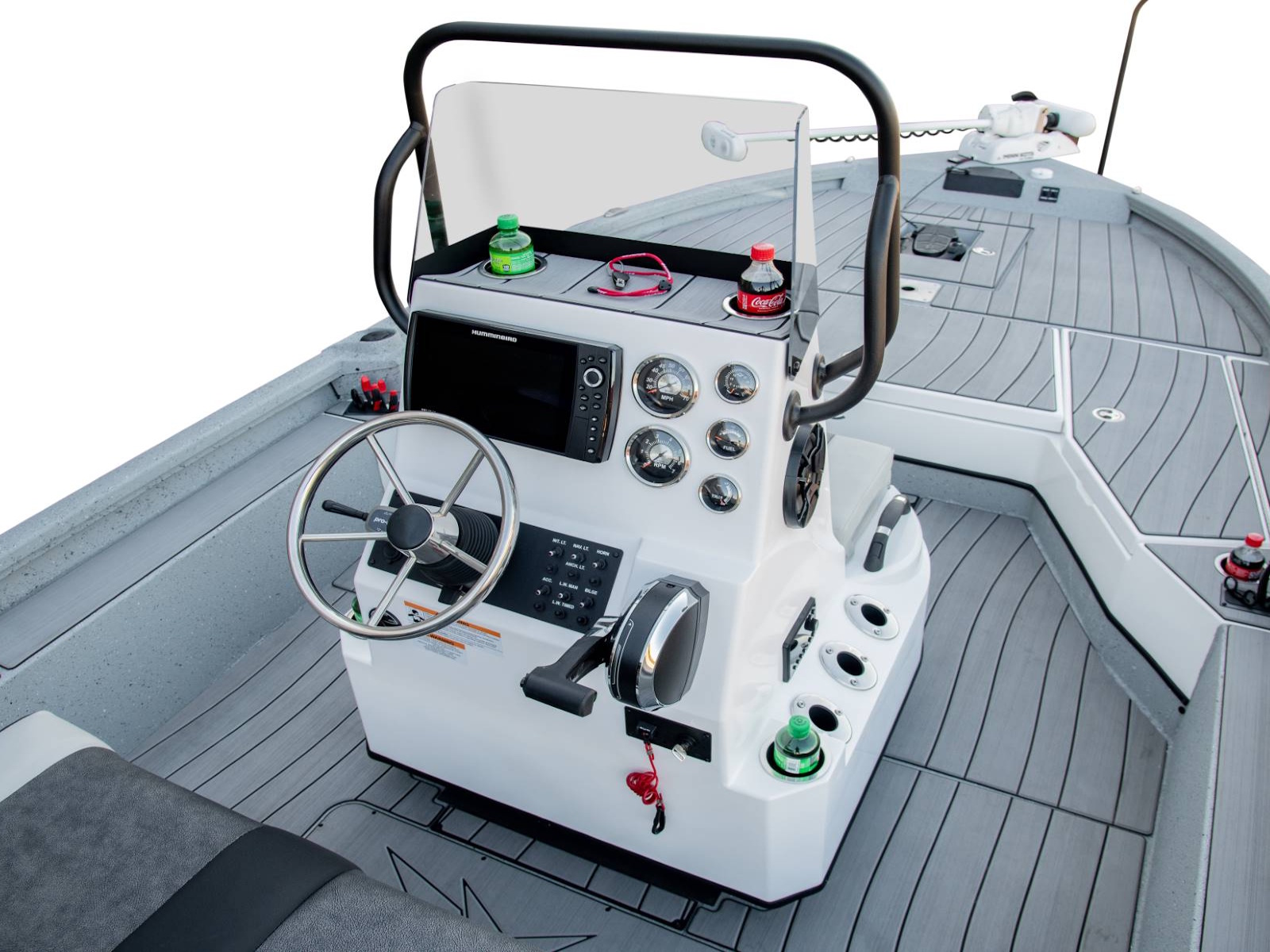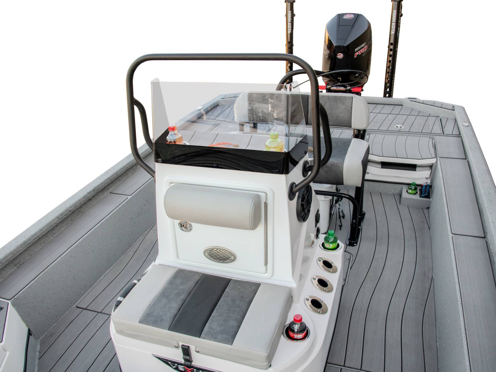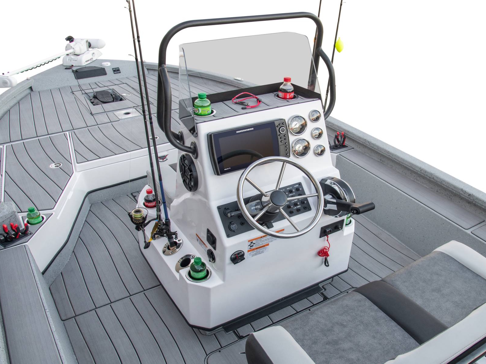 - Fiberglass Console with Integrated Rod Storage and LED Lit Toe Rail