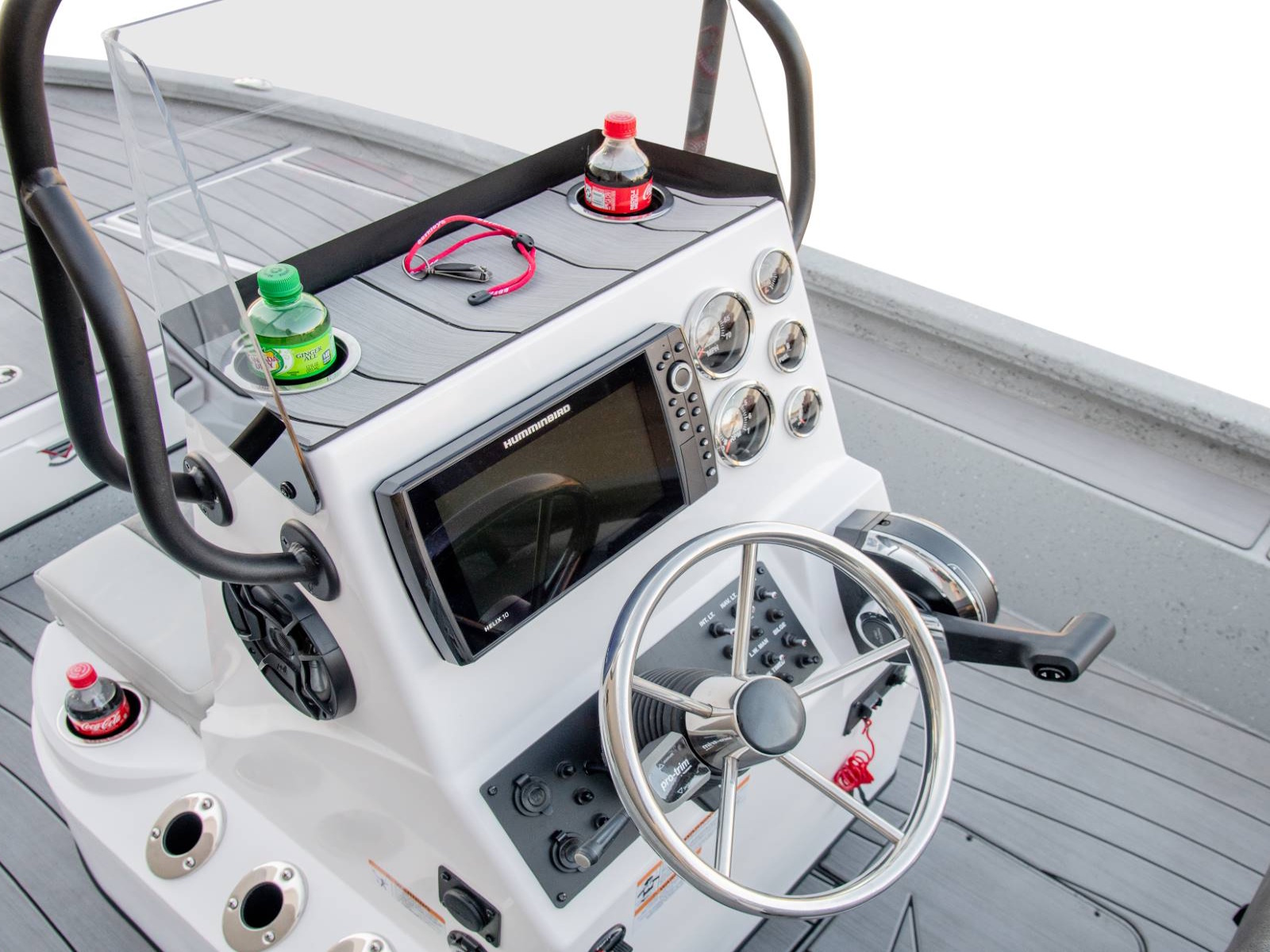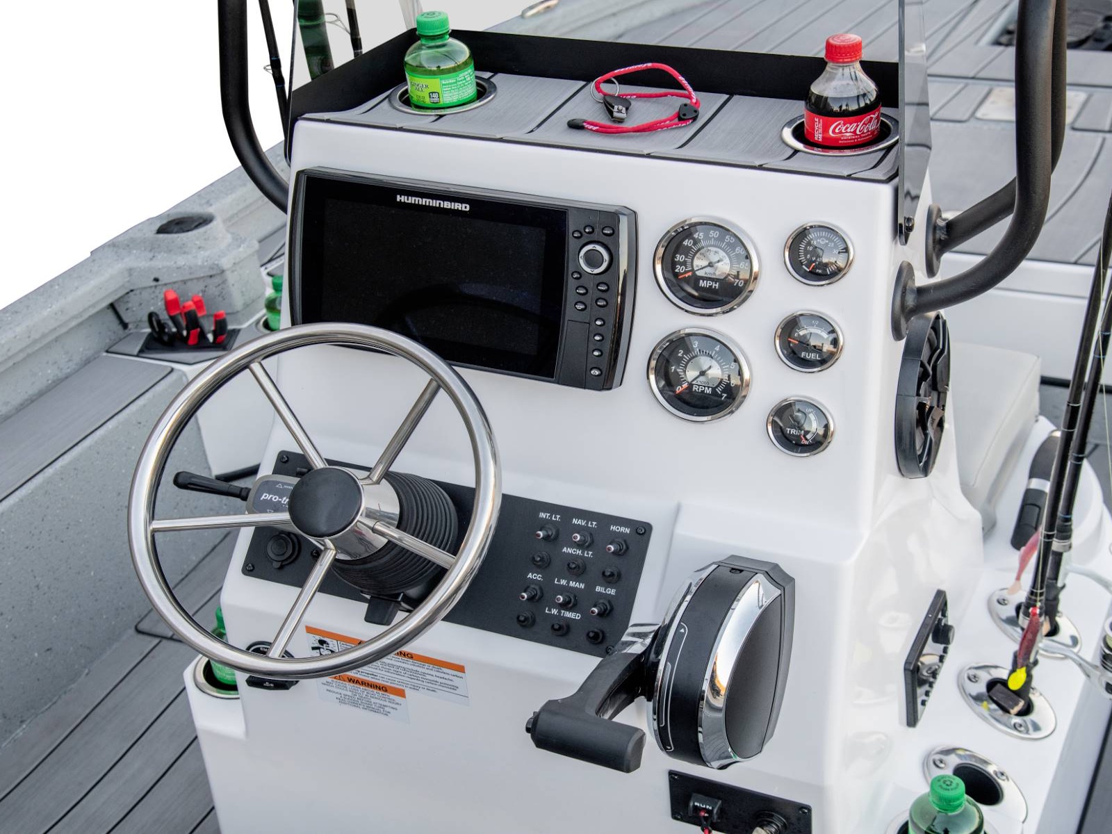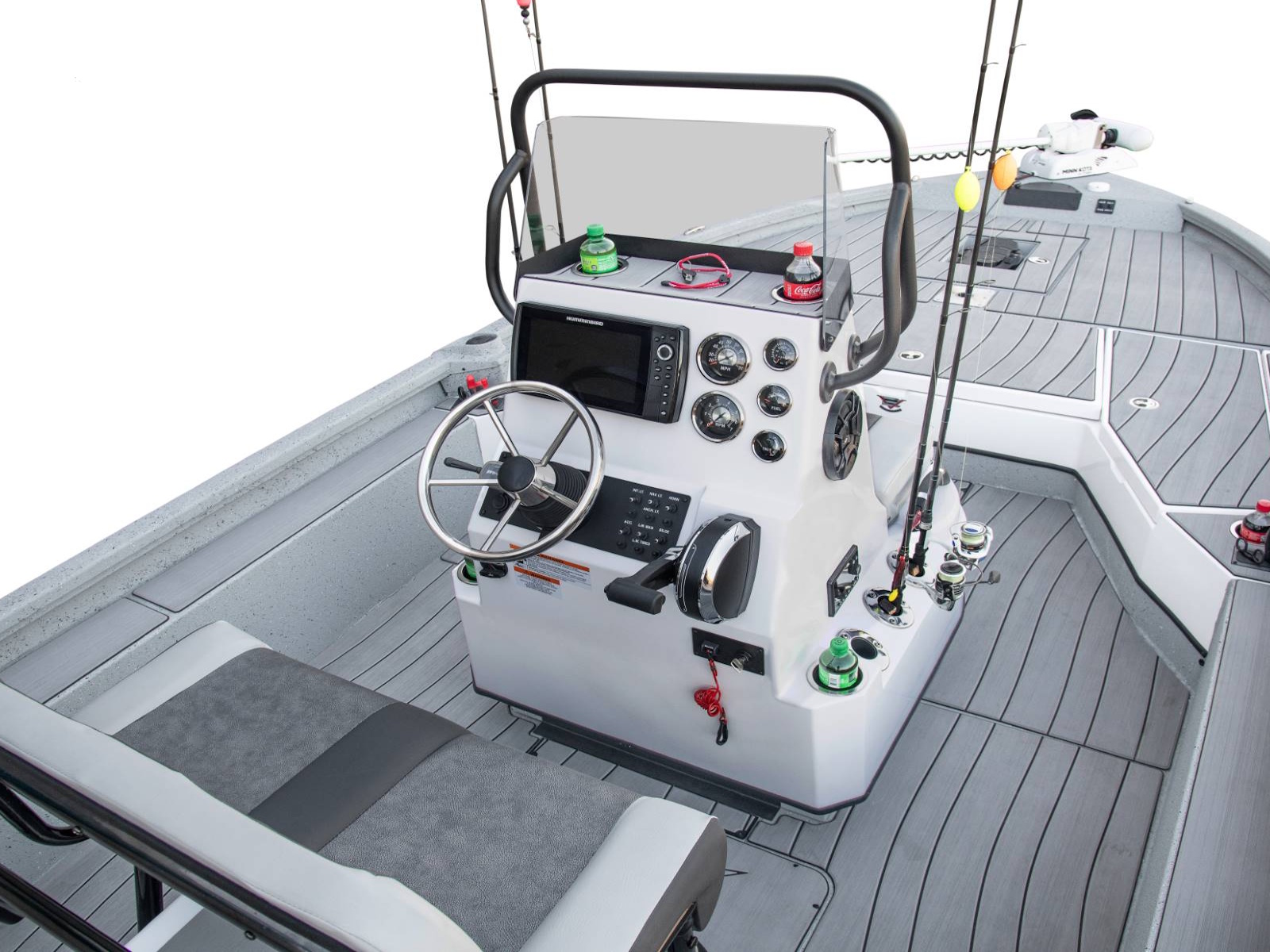 - Fiberglass Console with Integrated Rod Storage and LED Lit Toe Rail