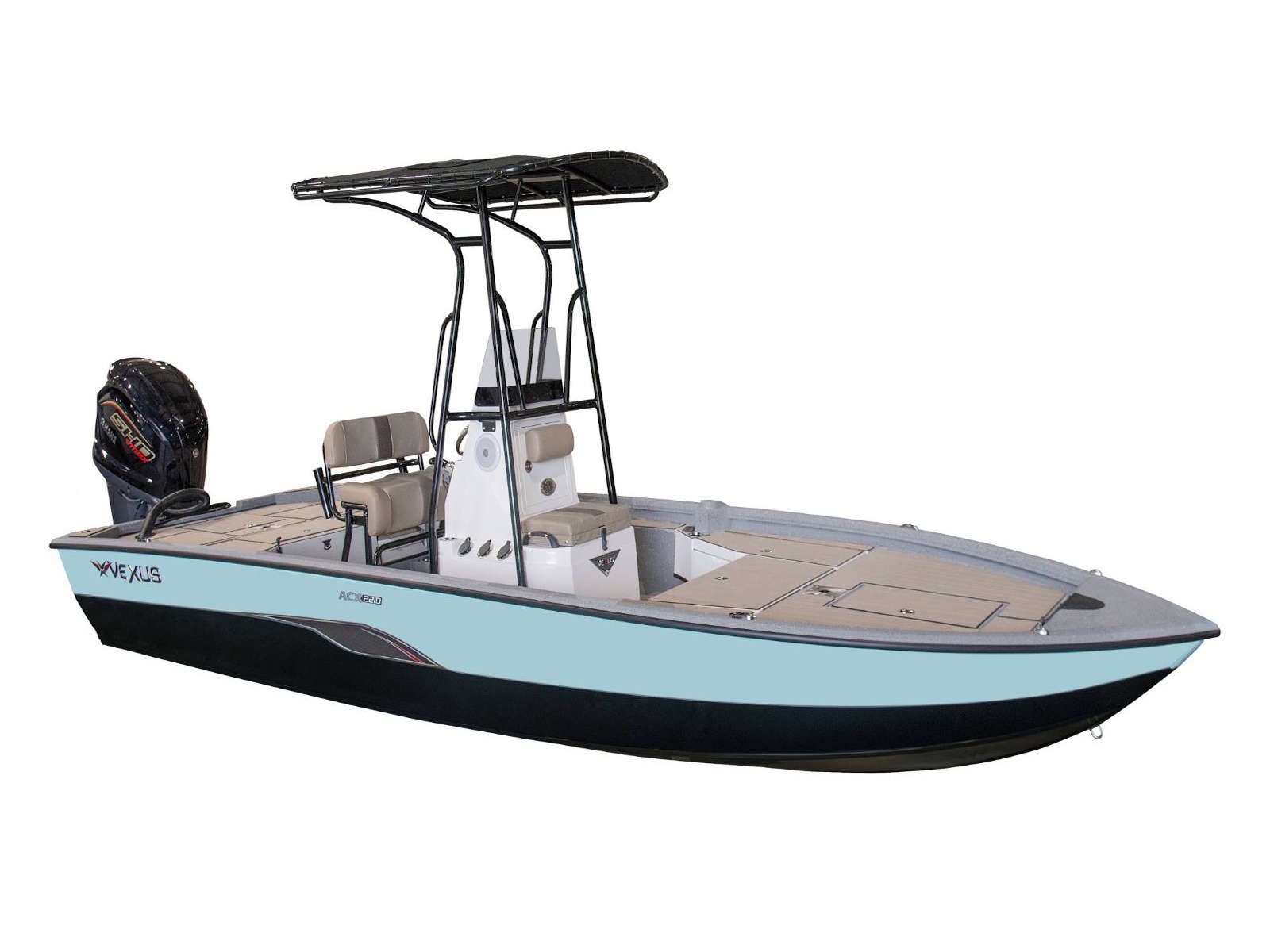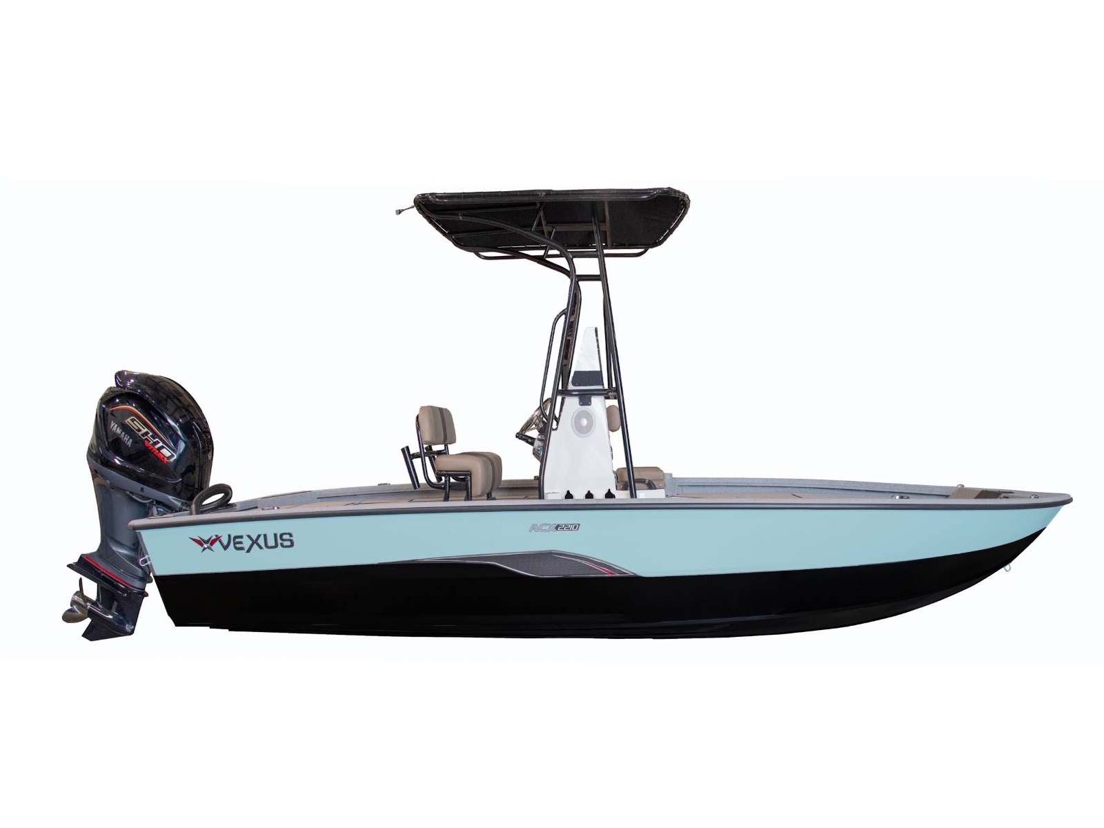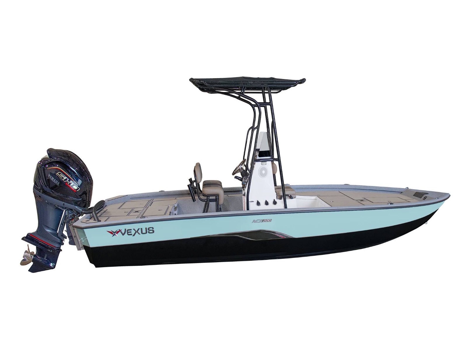 At 22’ 1” in length, this all-welded, 250-rated machine is built on our exclusive V2 hull design. It’s an unparalleled advantage that makes it a literal force on the water. So much so, that it’s often mistaken for a glass rig. From ride to room and response to rewards, this Match-To-Glass™ comparison is pioneering a whole new level of leadership. There’s a noticeable difference in the look, feel, space, quietness, and comfort of the cutting-edge platform. The high performance pad hull is highlighted by SeaStar™ Pro hydraulic steering, computer-modeled lifting strakes, integrated spray rails, a rough-water-ready V entry, and a 55 gallon fuel capacity mounted longitudinally below the floor. It’s a revolutionary combination of features delivering an incredibly smooth, dry, shallow, stable, and responsive ride.