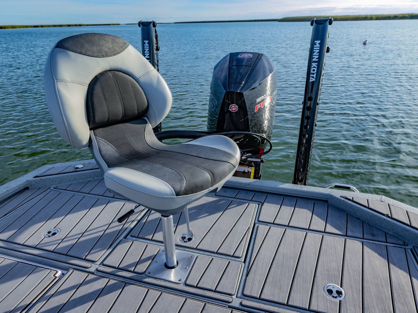 You won't see us offering base-level equipment that keeps the starting price artificially low. As avid anglers ourselves, we package the boats like we would want them. You'll find our entire lineup has a stainless-steel propeller, stainless boarding ladder, smooth hydraulic steering, an onboard charger, and a proven Minn Kota trolling motor built into the price.