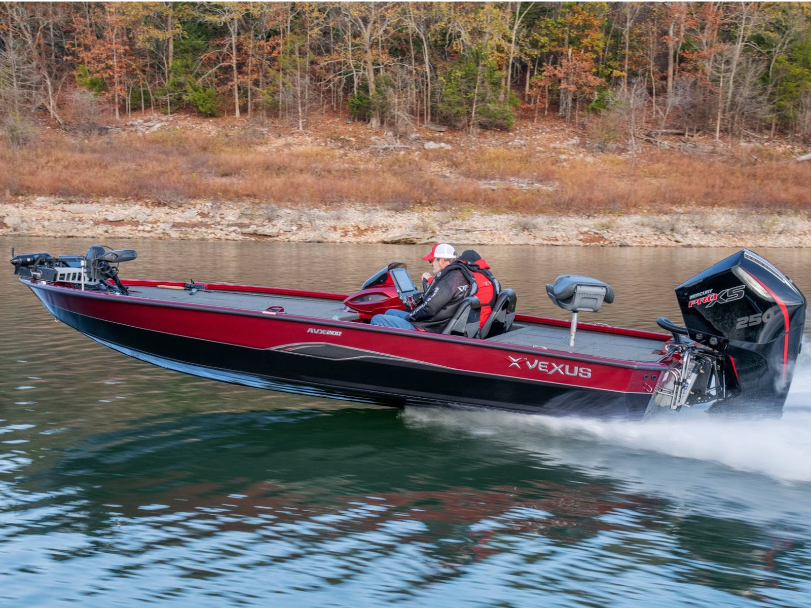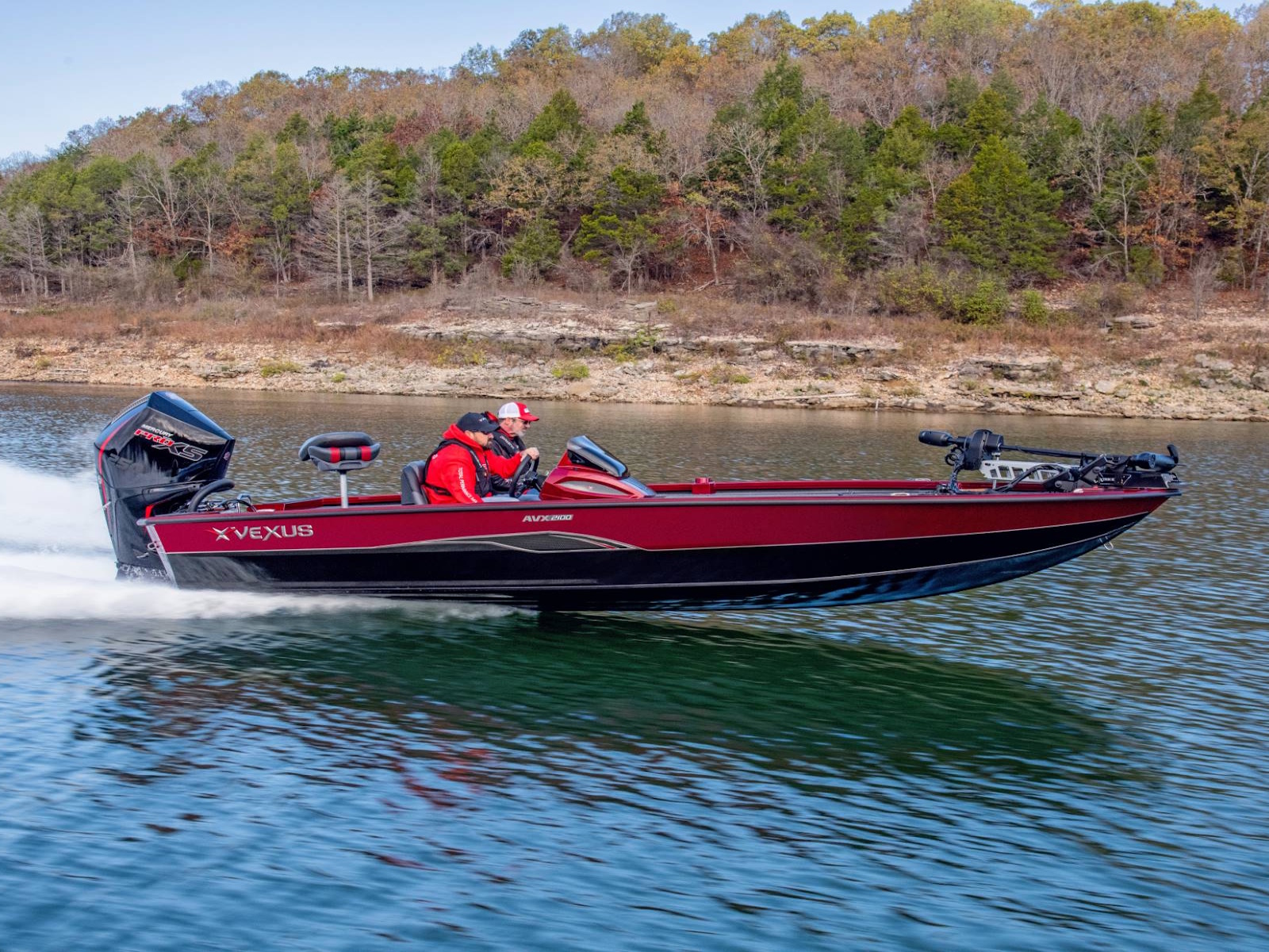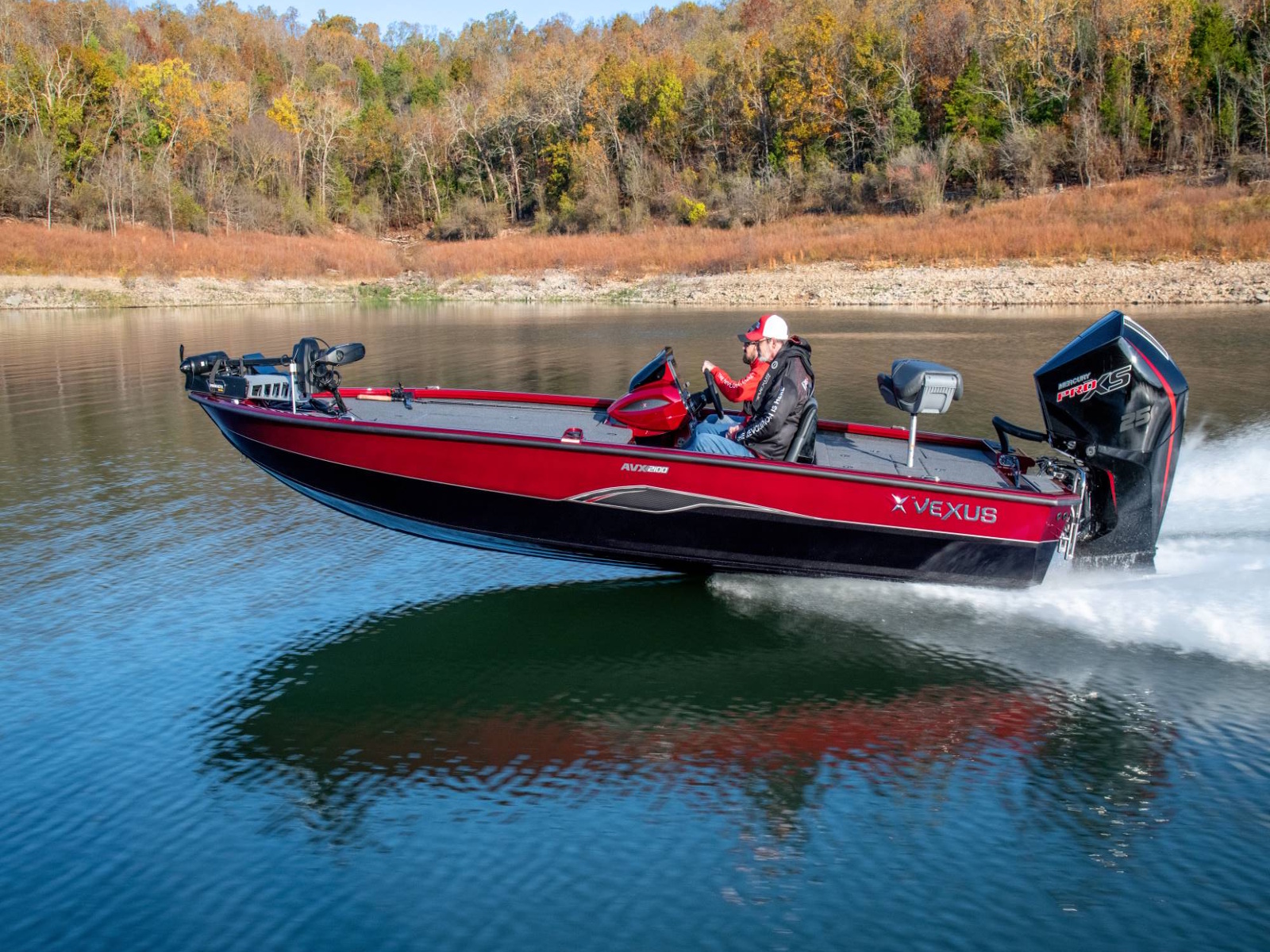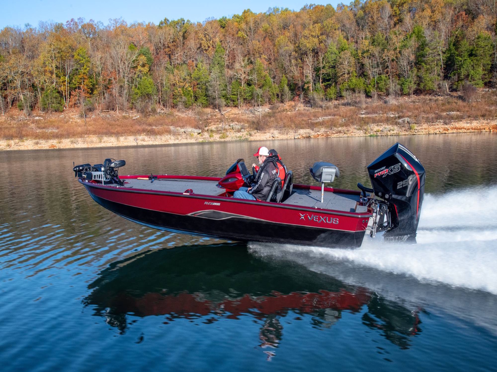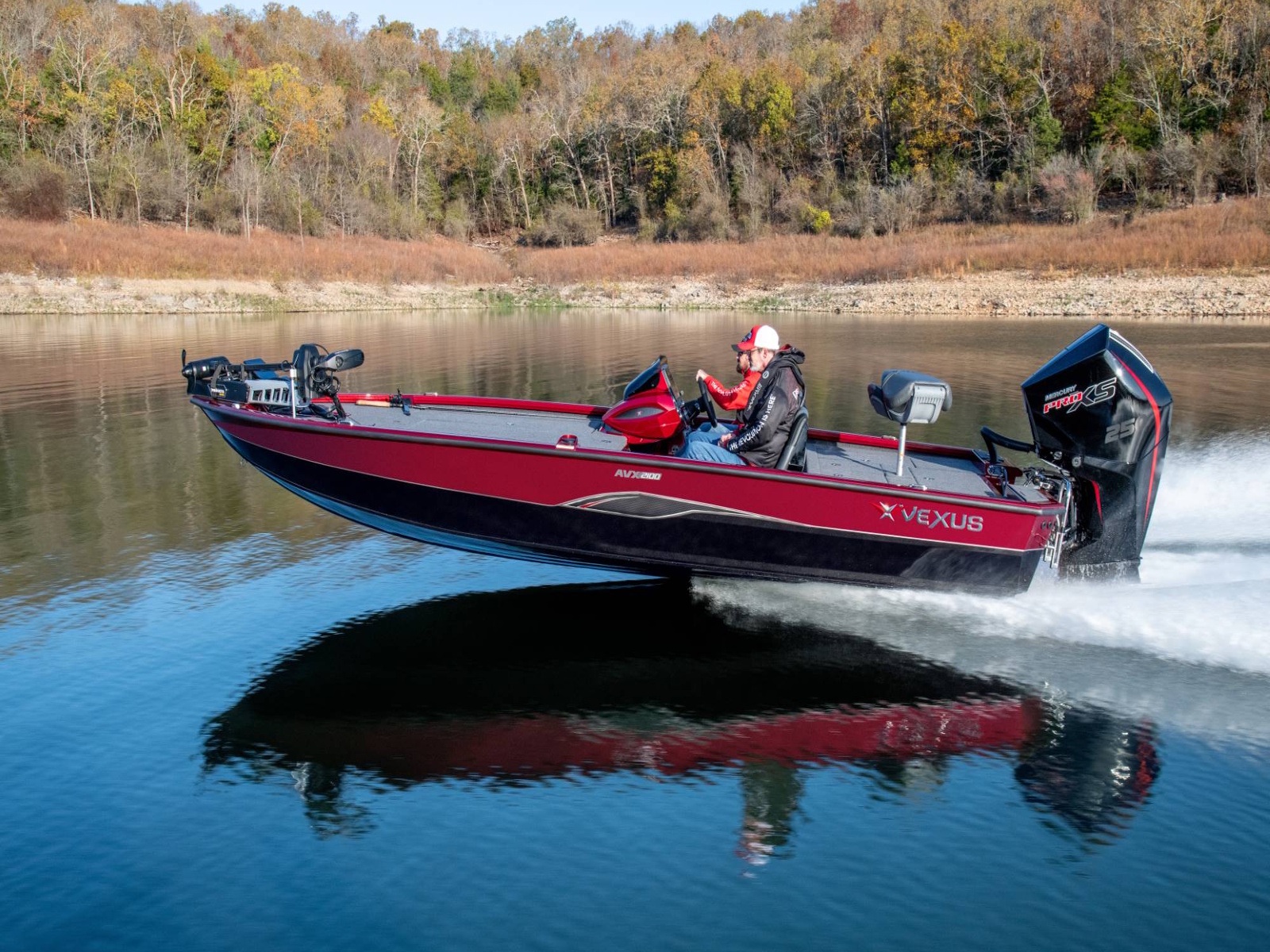 Pure performance, head-turning good looks, and massive fishing decks. Combine that with oversized storage, instant hole shots, responsive handling, and an incredibly smooth, rough water ride, and you’ve just described the revolutionary AVX2100. Surrounded by 20’8” of hand forged muscle, this beam-forward design includes a step pad hull, computer-modeled lifting strakes, integrated spray rails, and a 250-horsepower rating. Inside and out, it’s easy to see that this Flippin Fish Stalker™ is a tournament-bred, aluminum machine.