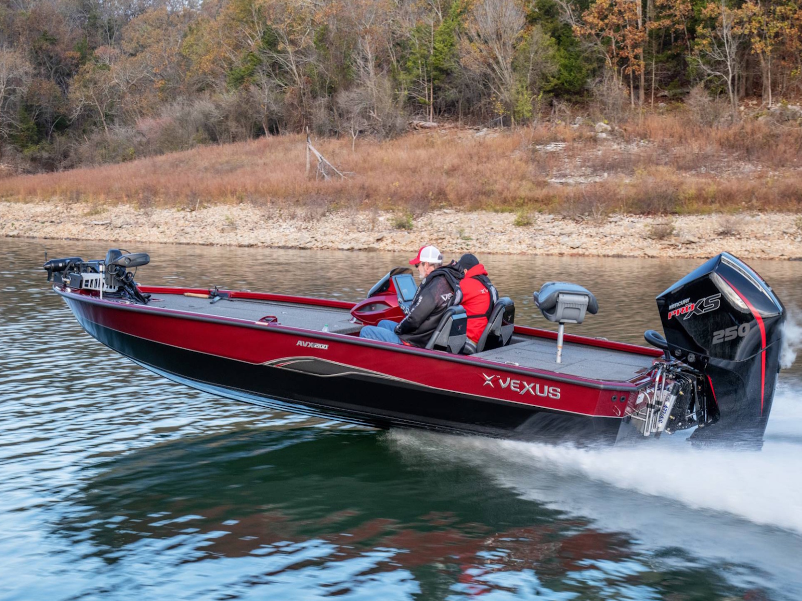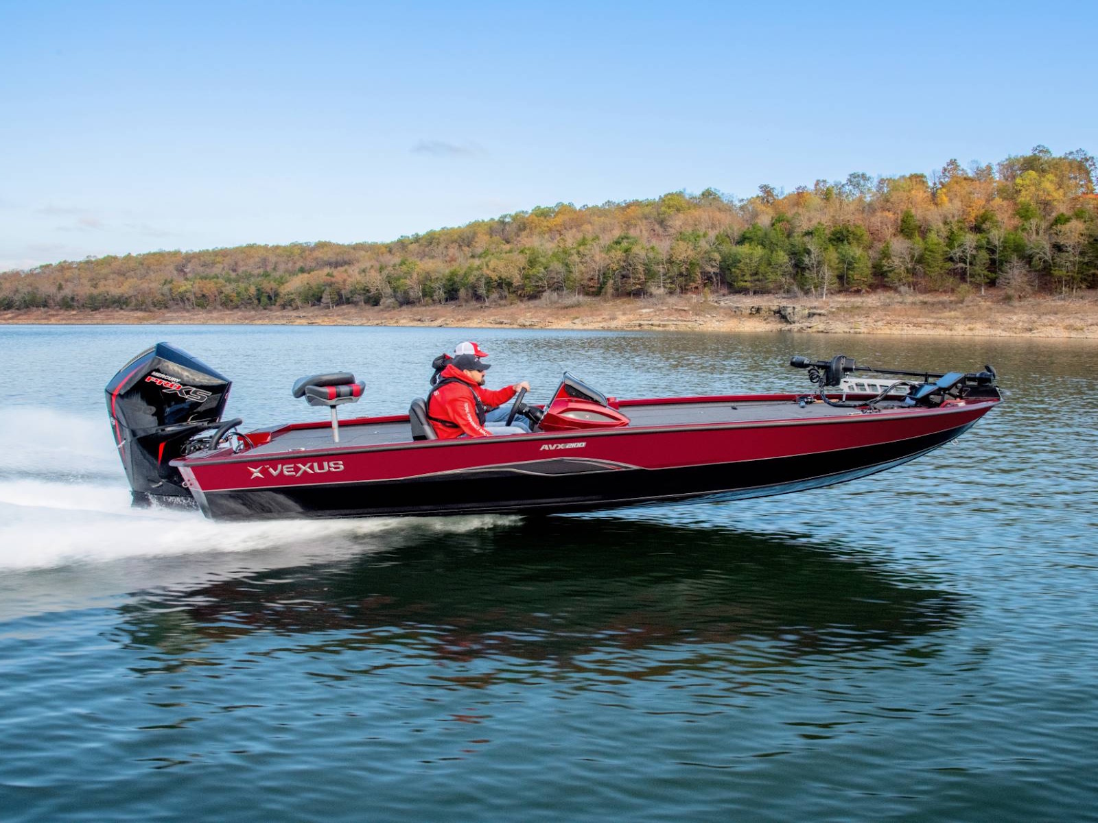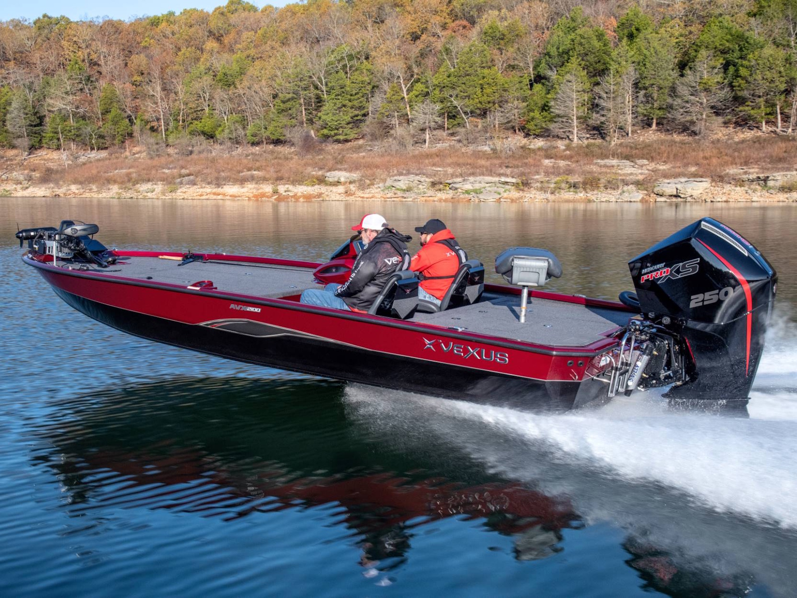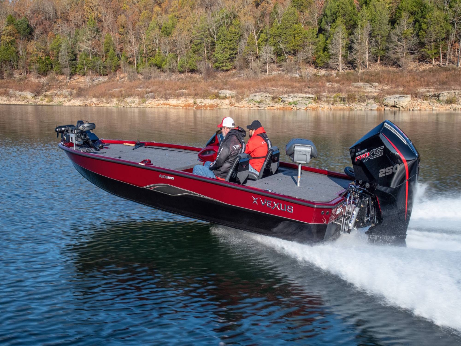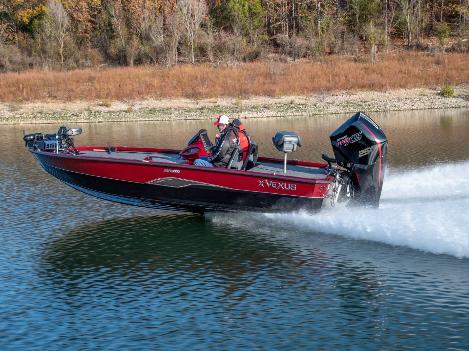 Pure performance, head-turning good looks, and massive fishing decks. Combine that with oversized storage, instant hole shots, responsive handling, and an incredibly smooth, rough water ride, and you’ve just described the revolutionary AVX2100. Surrounded by 20’8” of hand forged muscle, this beam-forward design includes a step pad hull, computer-modeled lifting strakes, integrated spray rails, and a 250-horsepower rating. Inside and out, it’s easy to see that this Flippin Fish Stalker™ is a tournament-bred, aluminum machine.