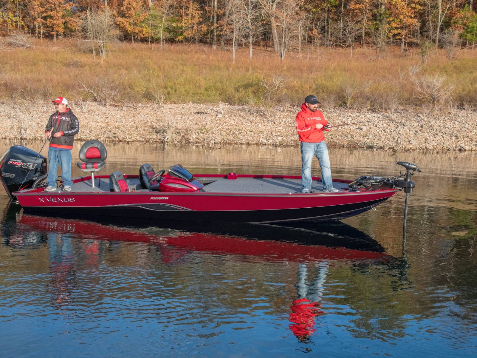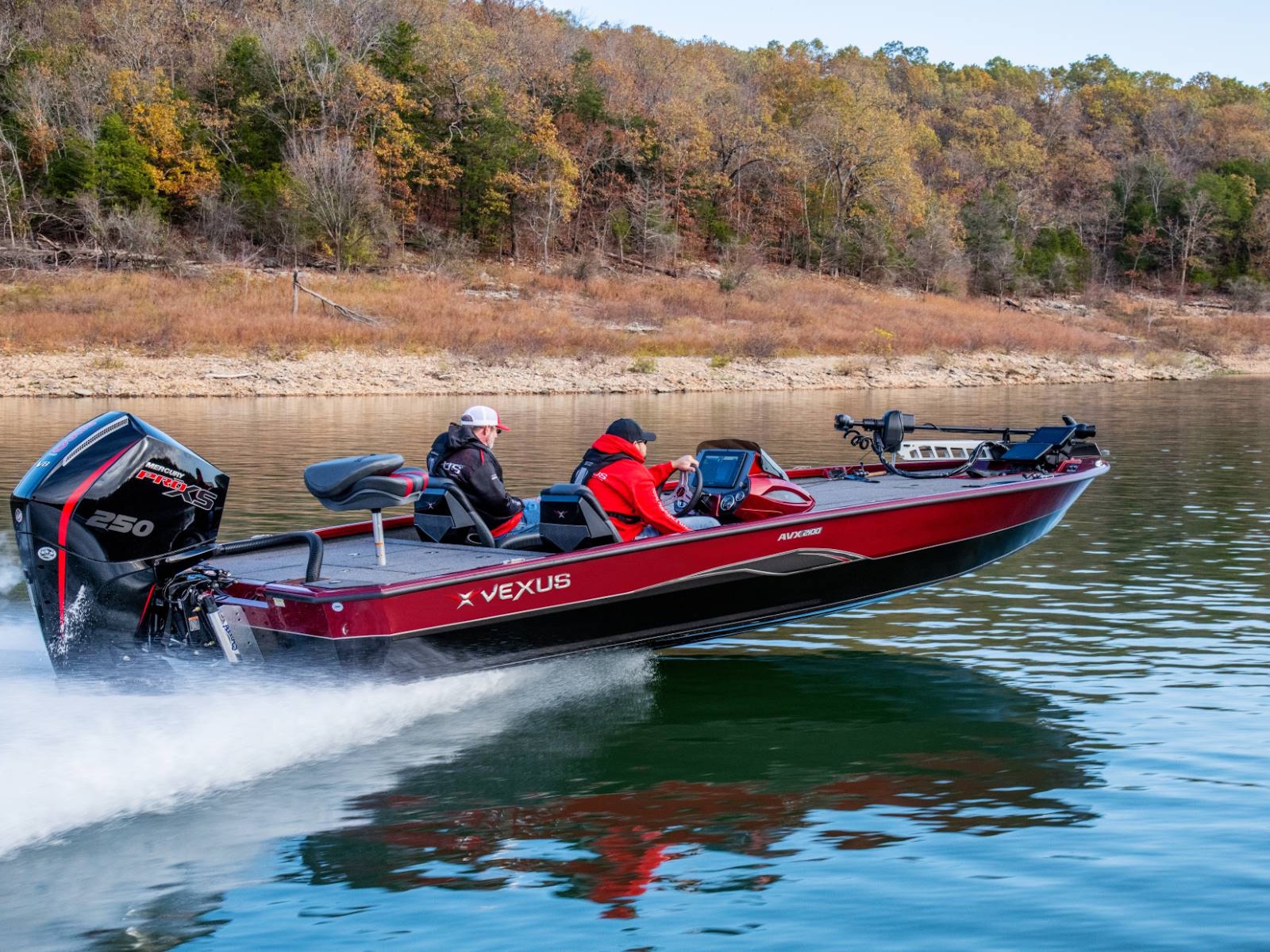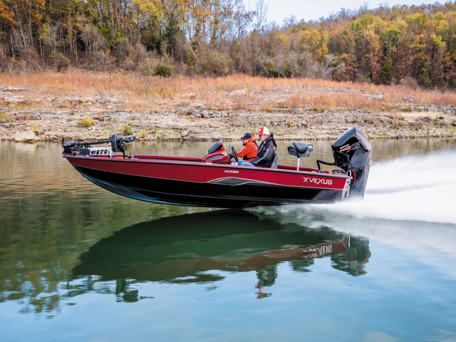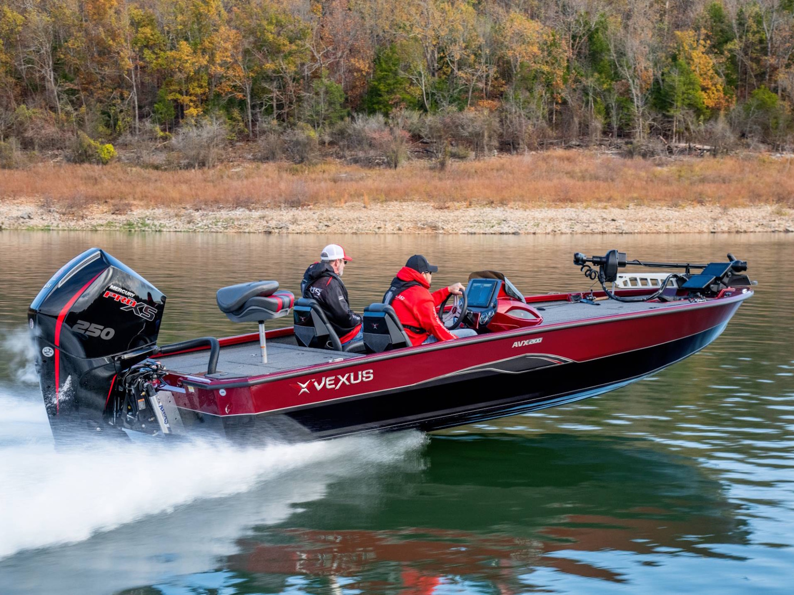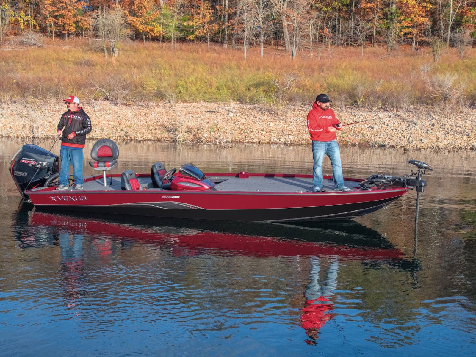 Pure performance, head-turning good looks, and massive fishing decks. Combine that with oversized storage, instant hole shots, responsive handling, and an incredibly smooth, rough water ride, and you’ve just described the revolutionary AVX2100. Surrounded by 20’8” of hand forged muscle, this beam-forward design includes a step pad hull, computer-modeled lifting strakes, integrated spray rails, and a 250-horsepower rating. Inside and out, it’s easy to see that this Flippin Fish Stalker™ is a tournament-bred, aluminum machine.