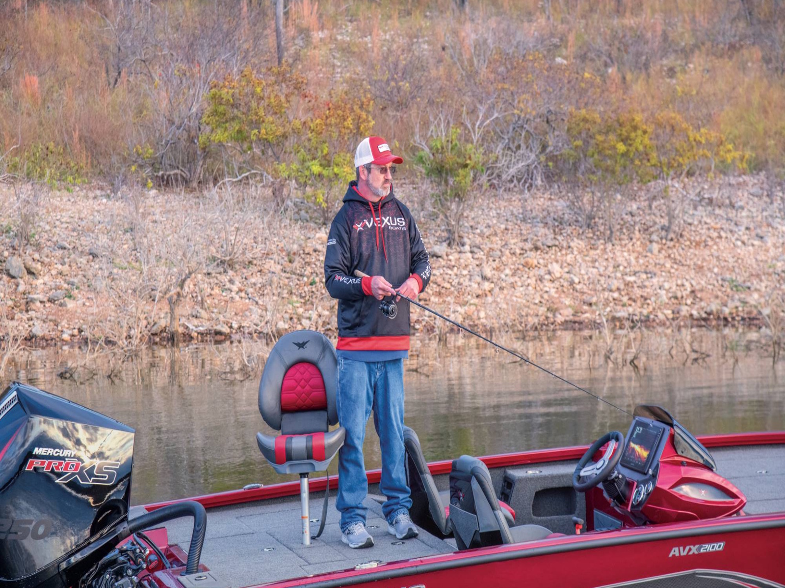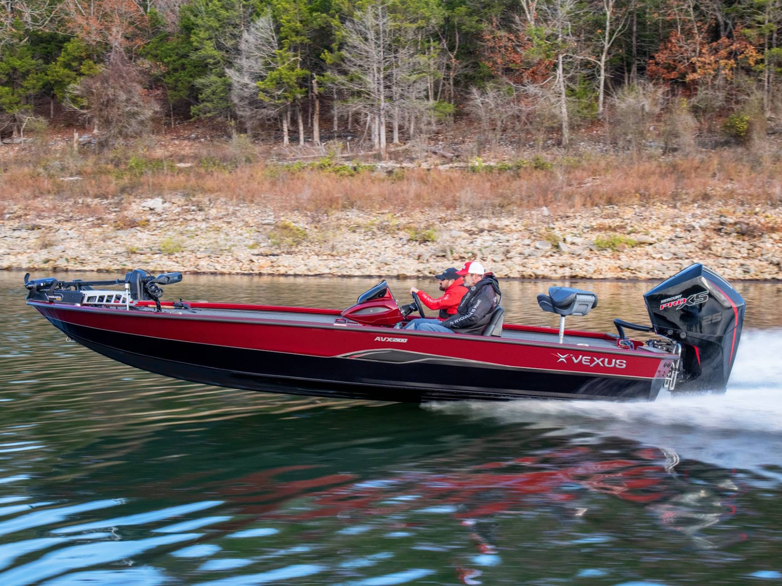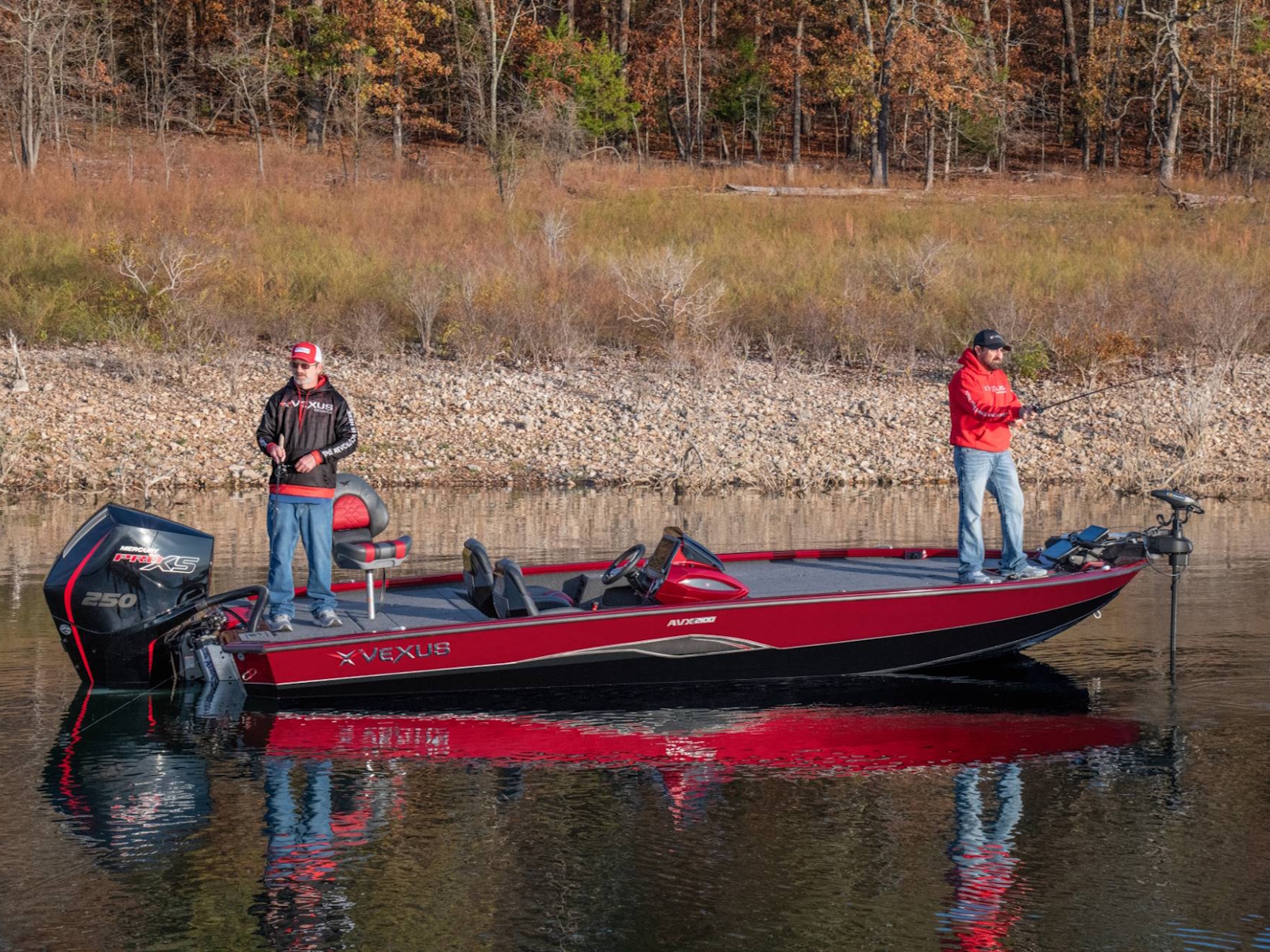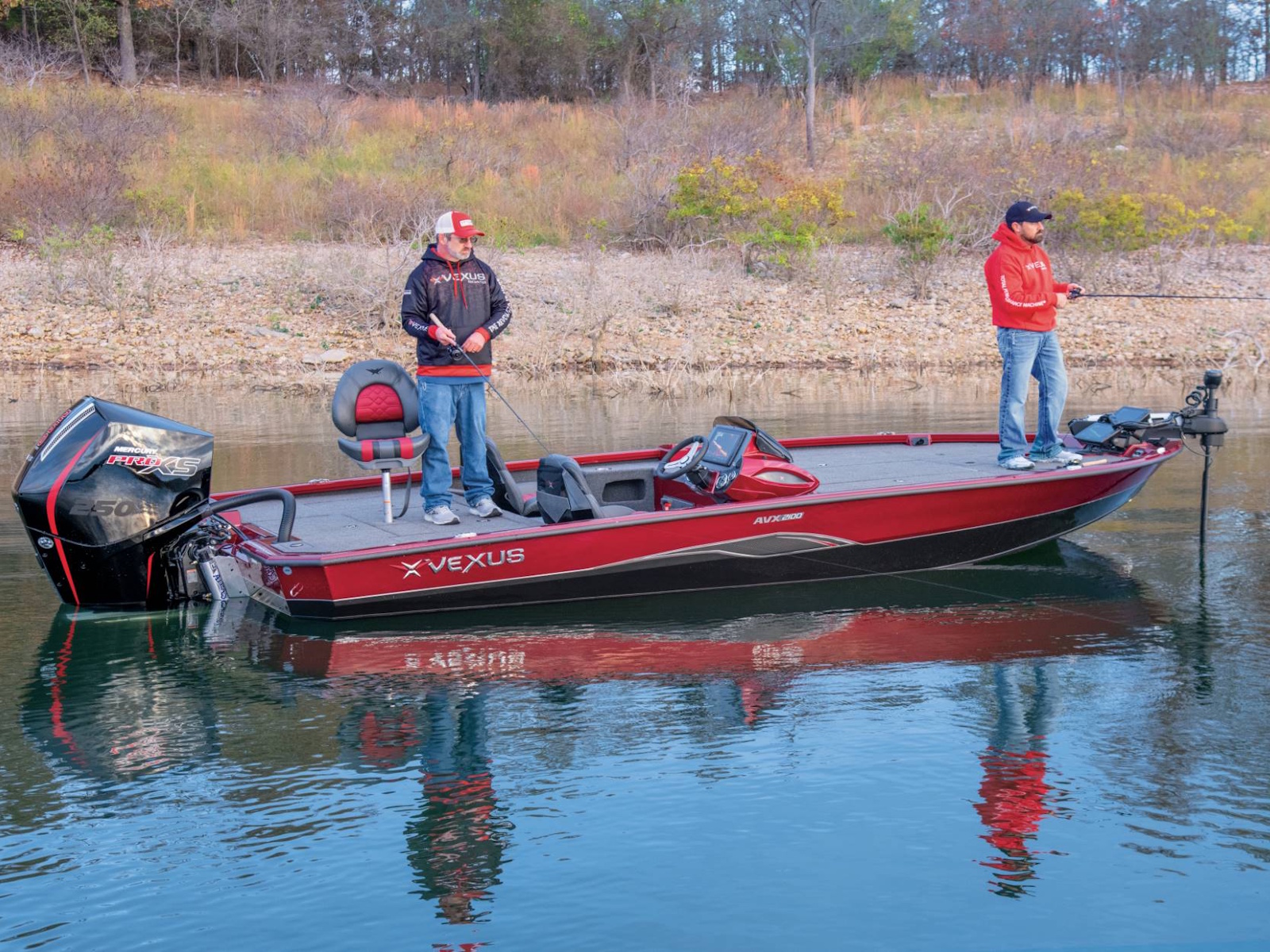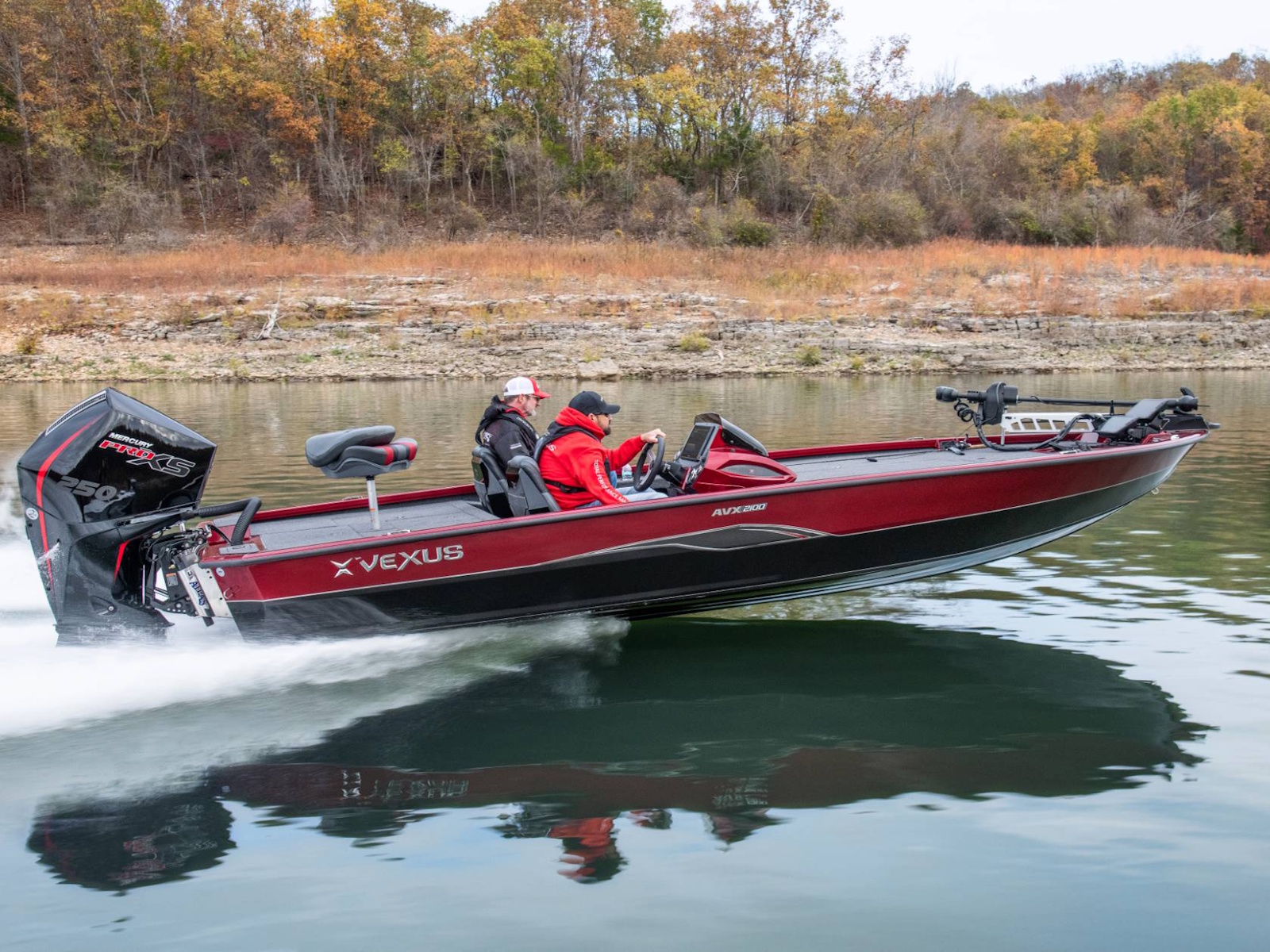 Pure performance, head-turning good looks, and massive fishing decks. Combine that with oversized storage, instant hole shots, responsive handling, and an incredibly smooth, rough water ride, and you’ve just described the revolutionary AVX2100. Surrounded by 20’8” of hand forged muscle, this beam-forward design includes a step pad hull, computer-modeled lifting strakes, integrated spray rails, and a 250-horsepower rating. Inside and out, it’s easy to see that this Flippin Fish Stalker™ is a tournament-bred, aluminum machine.
