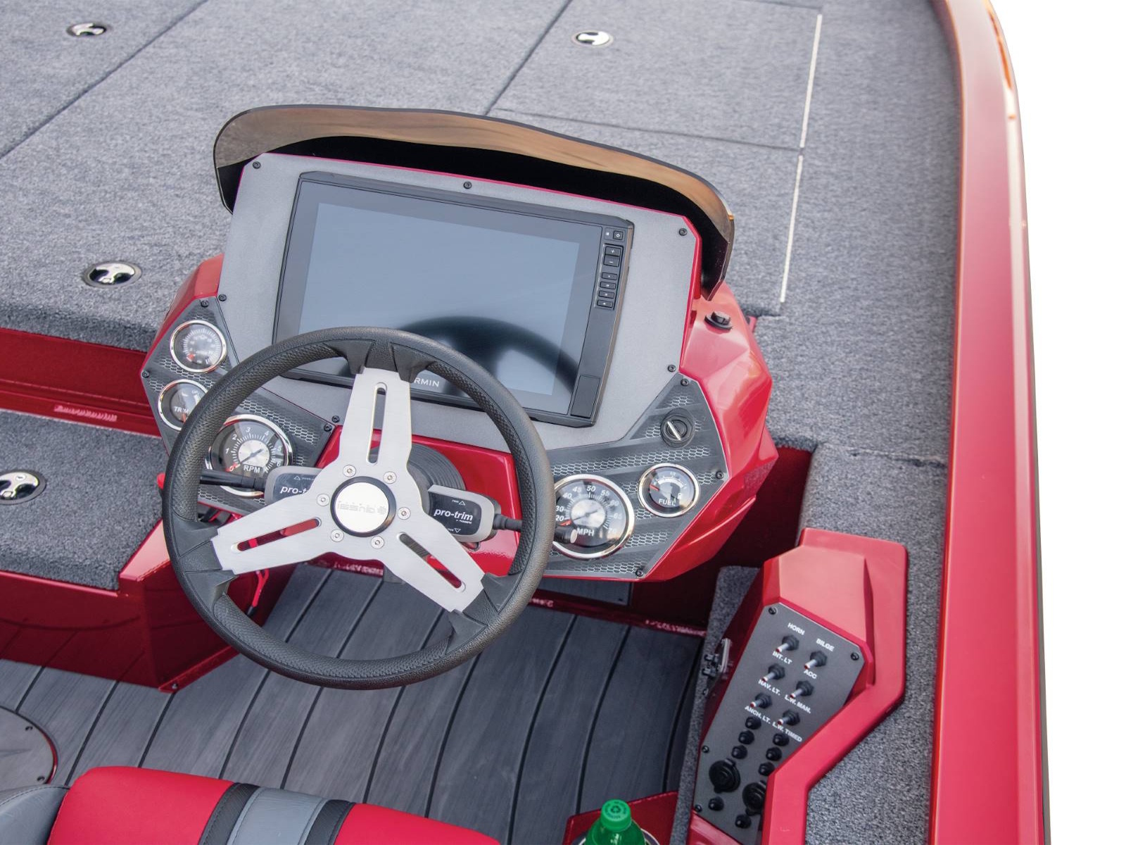 - Fiberglass Control Panel, Bow Panel, and Recessed Trolling Motor Pedal Tray