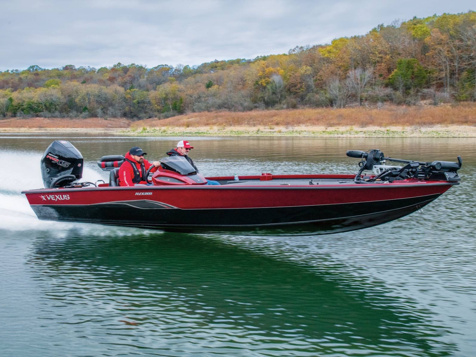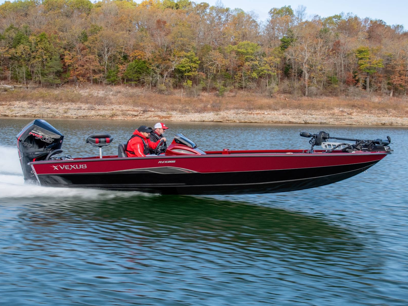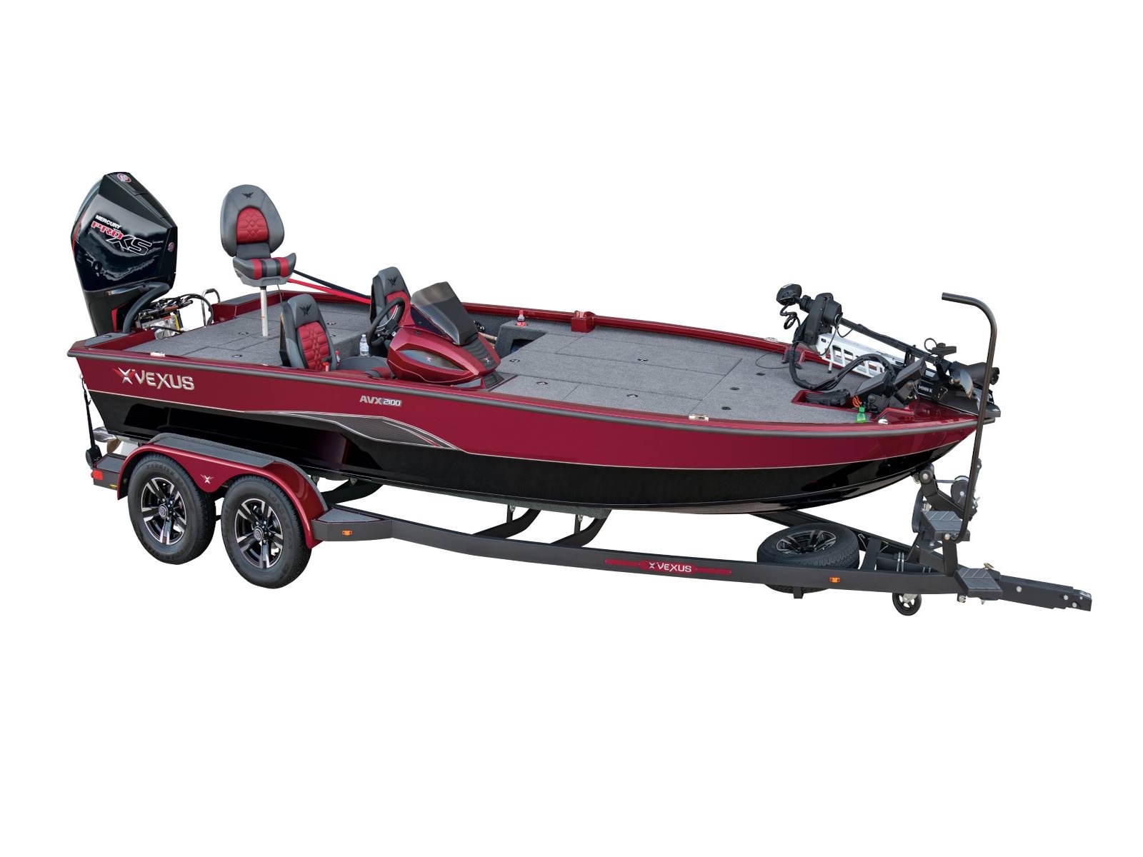 Cradling the 2100 is a factory-fitted, precision-matched trailer that’s loaded with even more standard features. Check out the reinforced 4-inch channel steel frame, Victor Shield™ protective coating, LED lighting, disc brakes on both axles, swing tongue, hybrid oil hubs, custom aluminum Vexus® branded wheels, fitted bunks, load guides, transom tie-downs, spare tire and wheel, multiple side steps, and an available bow step.