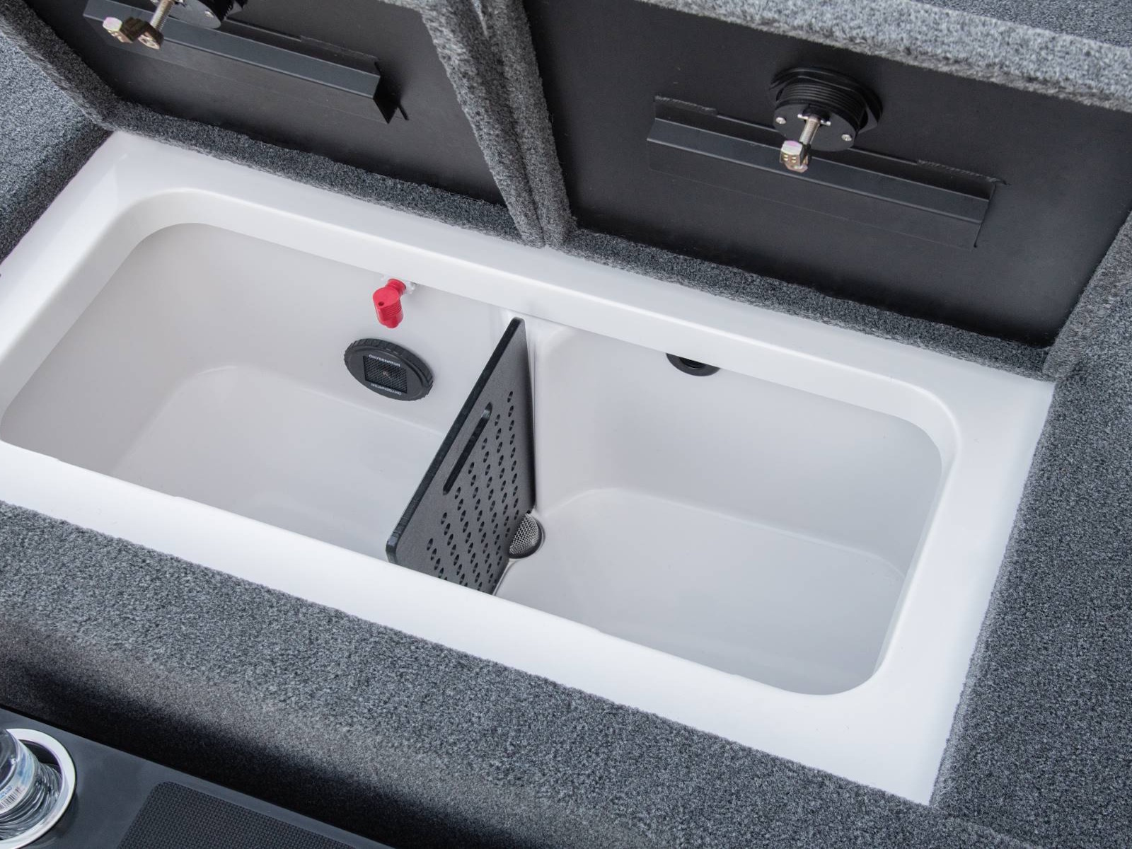 When money's on the line it's comforting to know that our livewell system is designed to keep the day's catch healthy and safe. We incorporate a valve system that makes changes easy, no more sticking your hand in cold water to drain the livewell. Additionally, the well is equipped with recirculating aeration, a pump-out system, and Splash Guard technology.