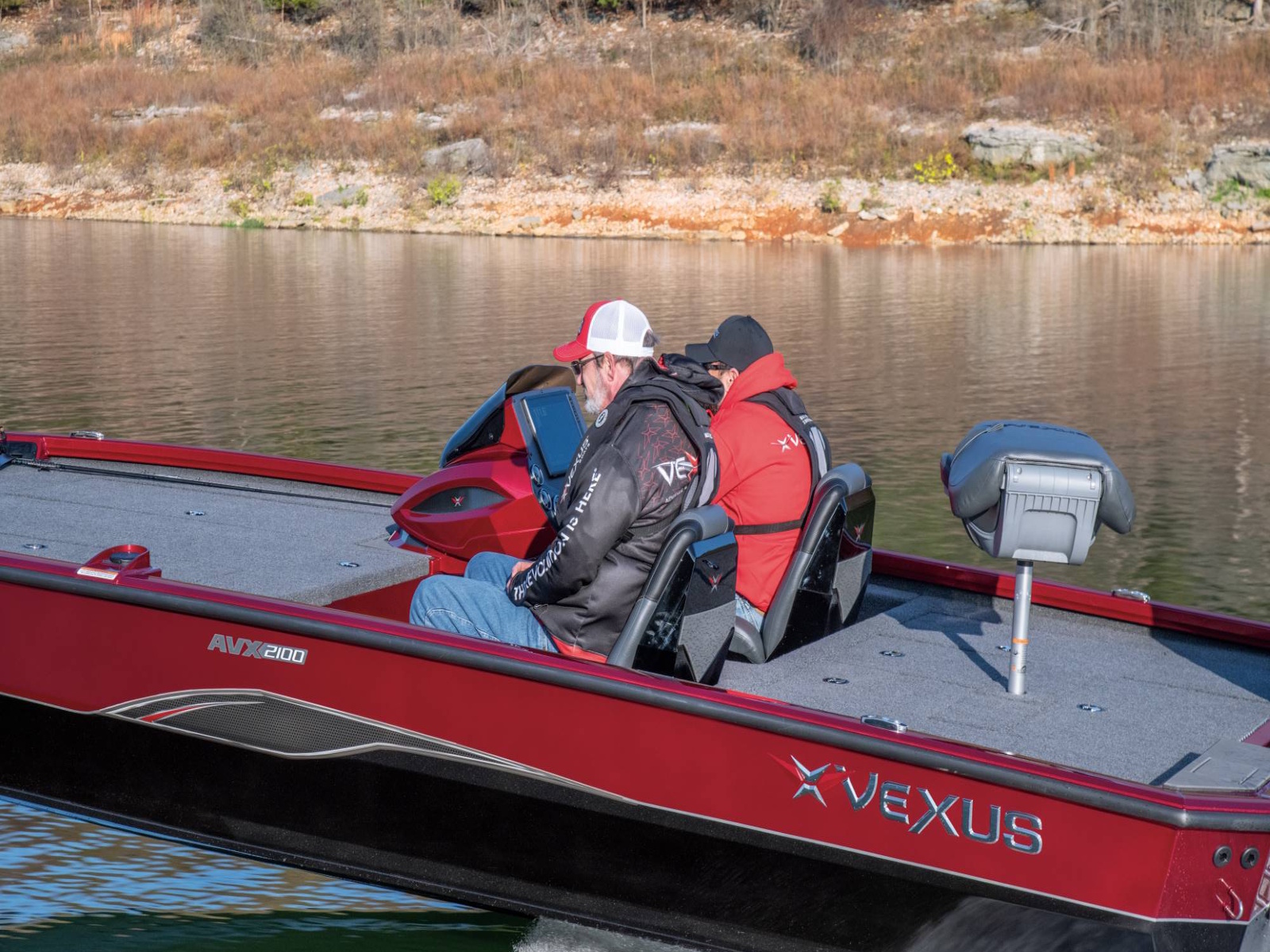 The ultra-stable platform is balanced with 44-gallons of fuel capacity centered longitudinally below the cockpit floor. The layout not only provides tremendous confidence but a noticeably agile feel and generous cockpit space. Ultimately, it’s a big water warrior with an uncanny ability to navigate the shallows. With a broad 96” beam, the AVX2100 is formed around our exclusive V2 Technology. The whole process is geared for repeatable consistency, slot-car-like handling, and accelerated performance.