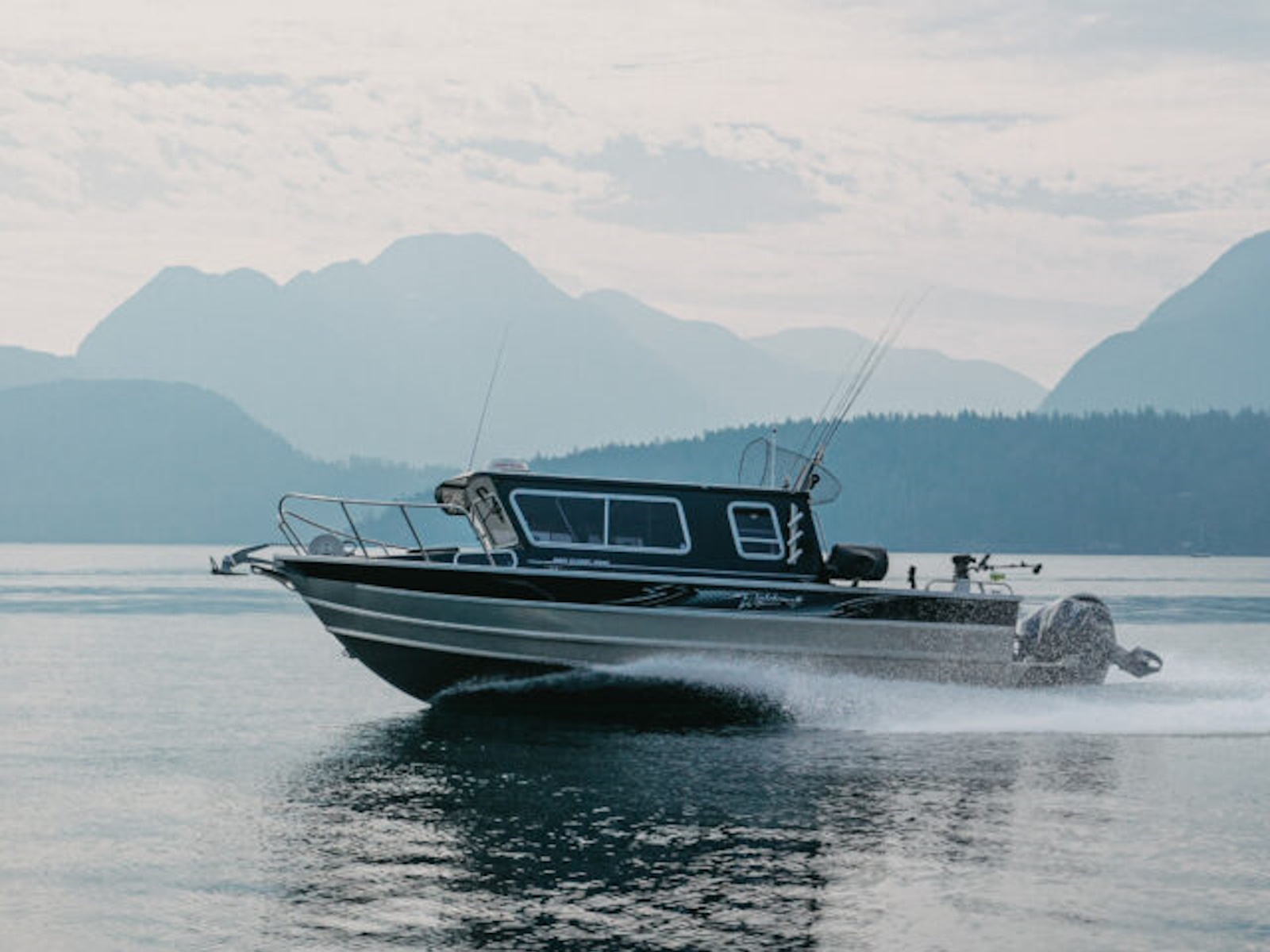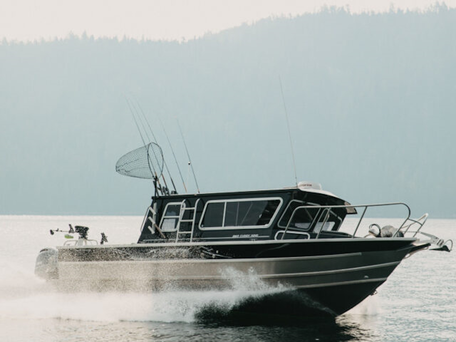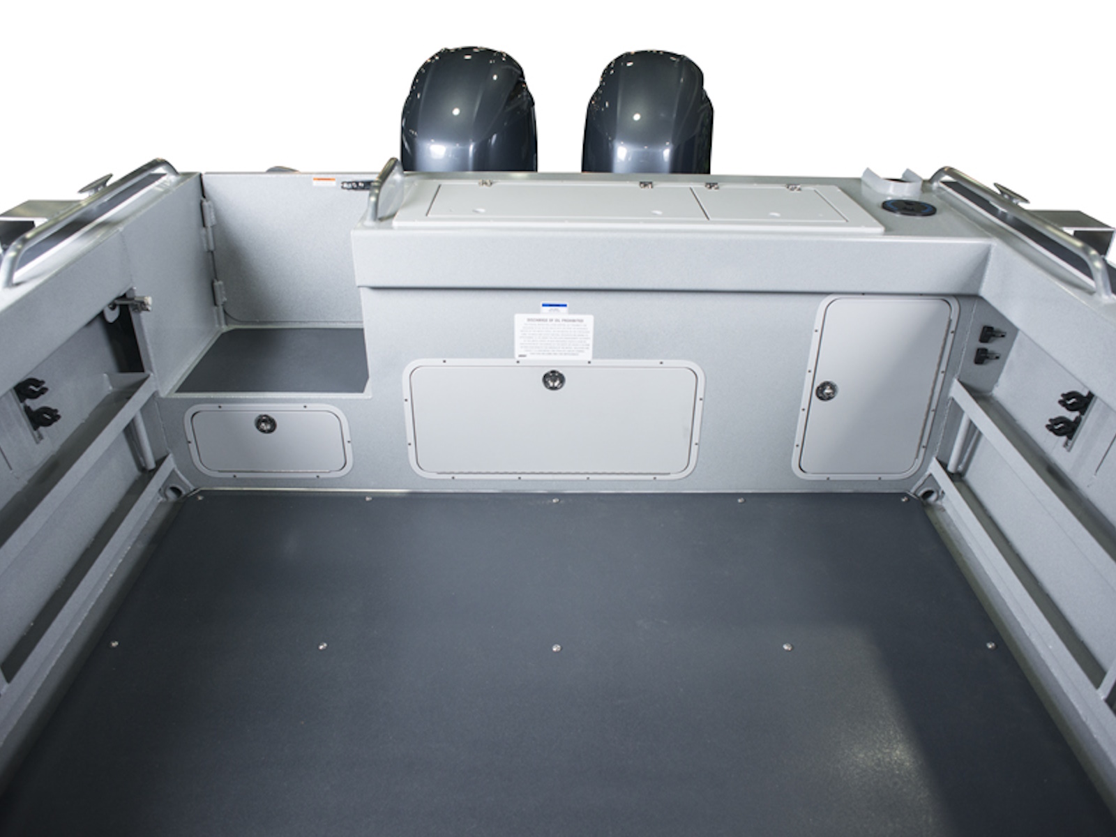 - Transom w/ 37-gallon fish box, cutting board lid & locking rigging compartment doors