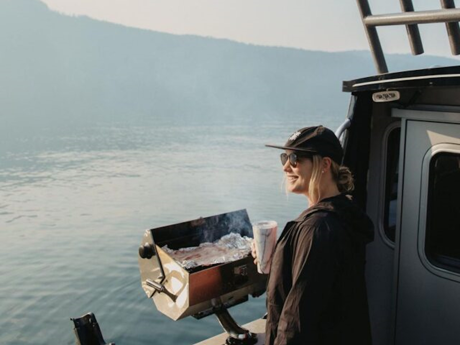 - Gunwale side tray access step/seats with grab handles