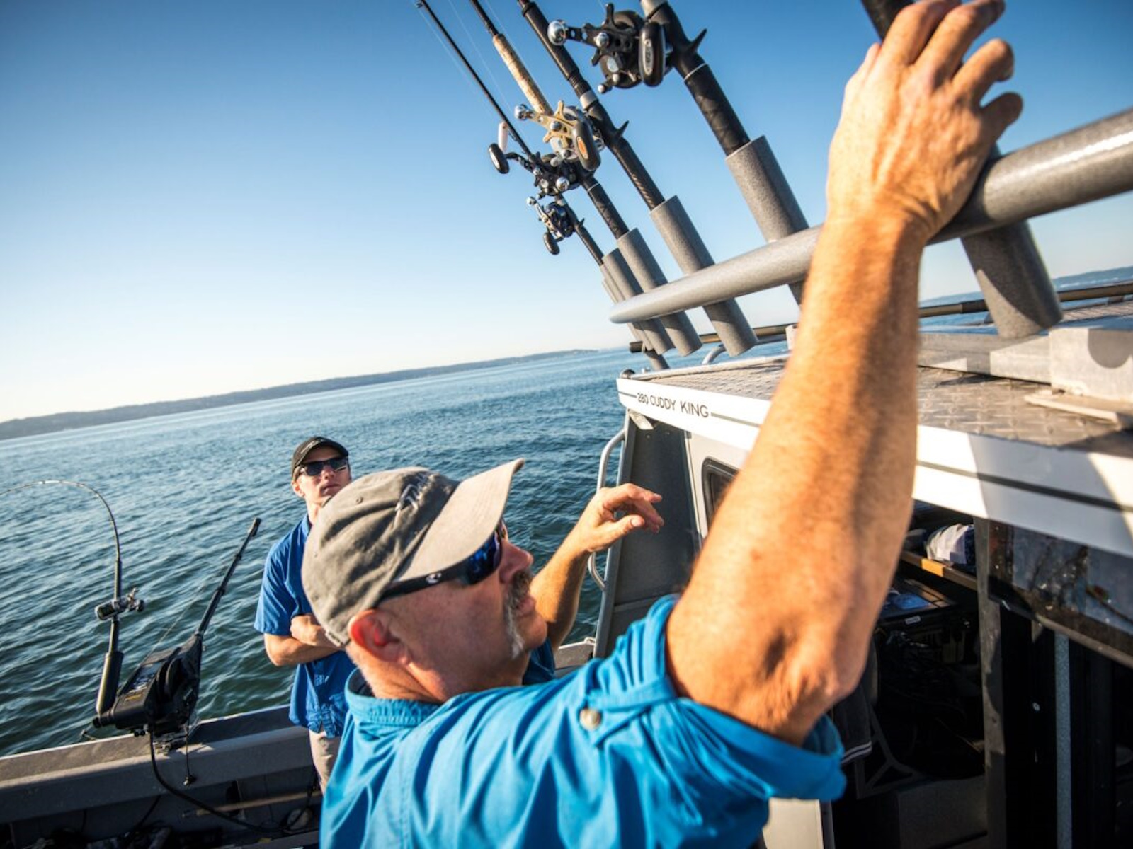 • 4 Side storage trays with gunwale rod racks- 2 per side