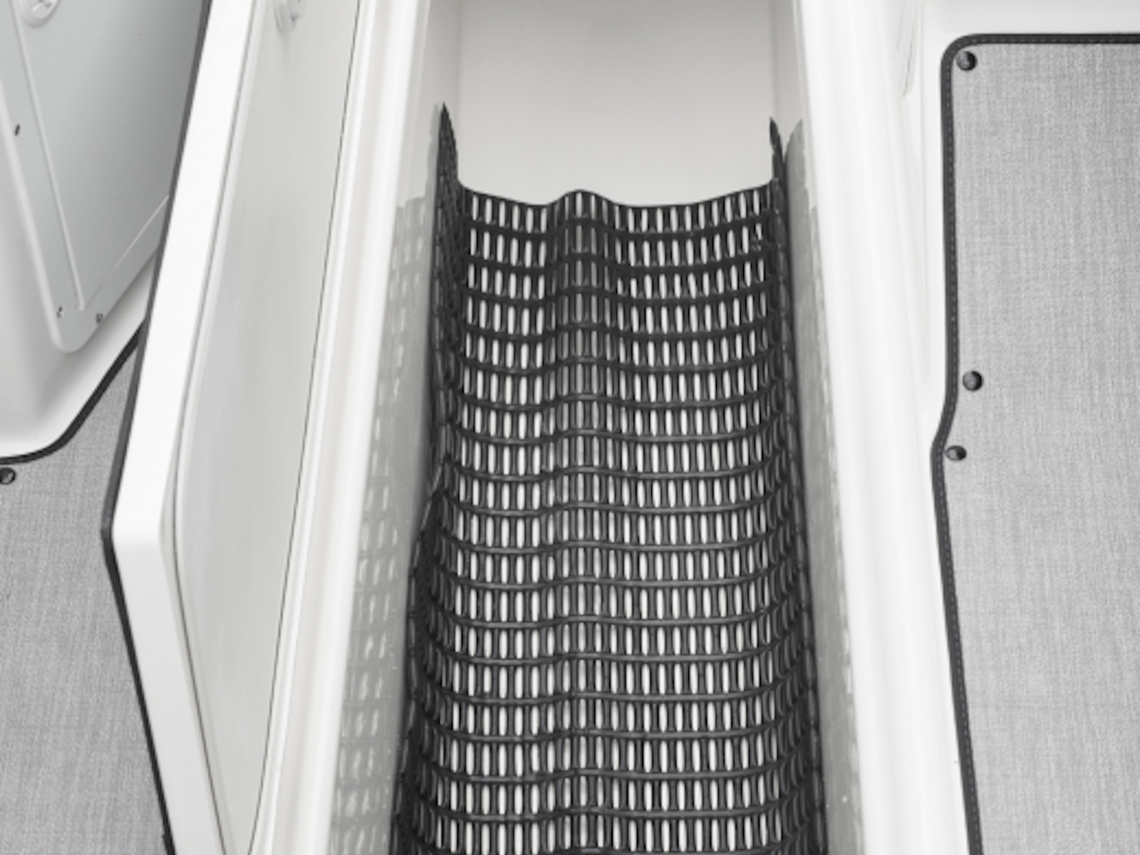 Designed for your convenience, the oversized in-floor storage compartment holds wakeboards and extra gear, keeping your boat clutter-free and your items easily accessible.