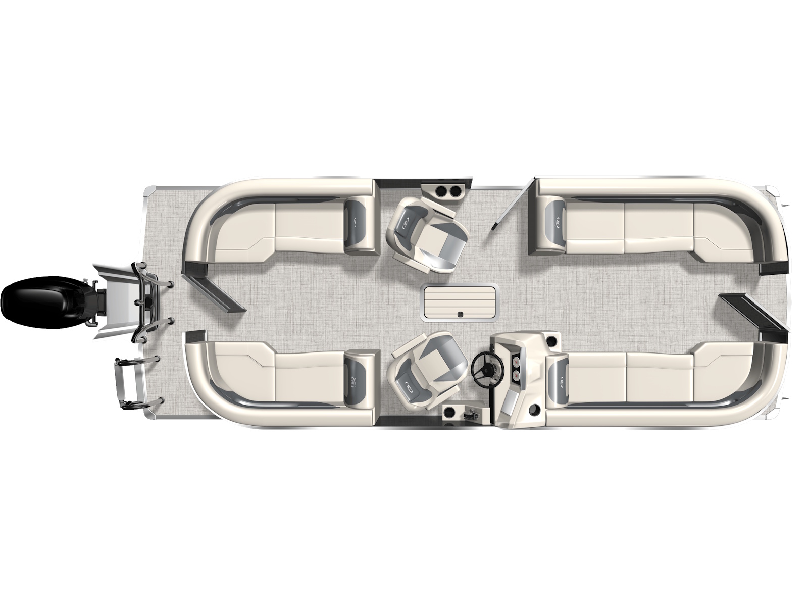 Do you have a large crew that demands lots of seating? The quad-lounge is the layout for those who want to spread out and relax on the ultra-comfy Barletta chaise lounges. The way the furniture wraps around the perimeter of the boat is also great for keeping curious kiddos and pets inside the boat while underway.