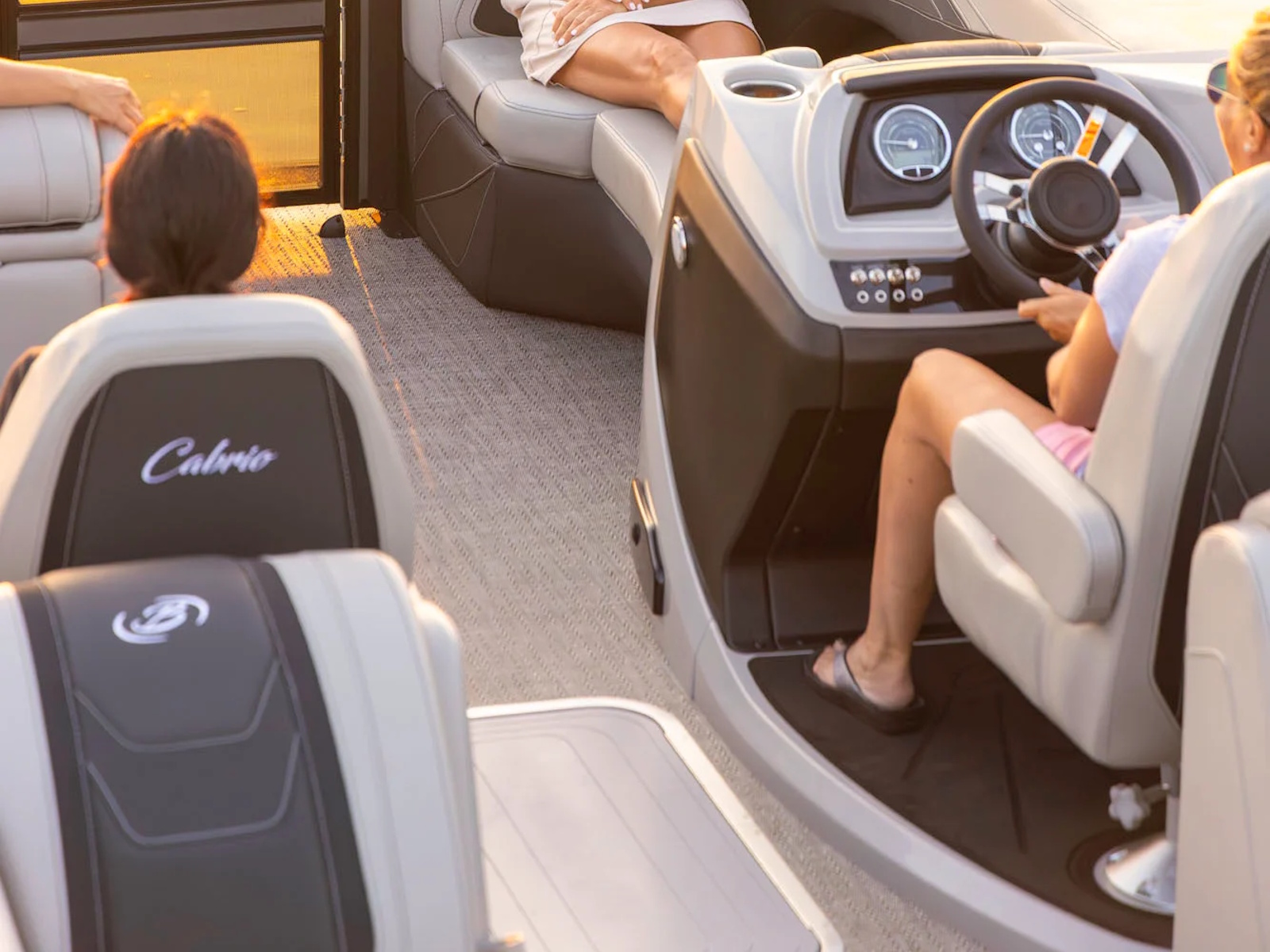 Do you have a large crew that demands lots of seating? The quad-lounge is the layout for those who want to spread out and relax on the ultra-comfy Barletta chaise lounges. The way the furniture wraps around the perimeter of the boat is also great for keeping curious kiddos and pets inside the boat while underway.