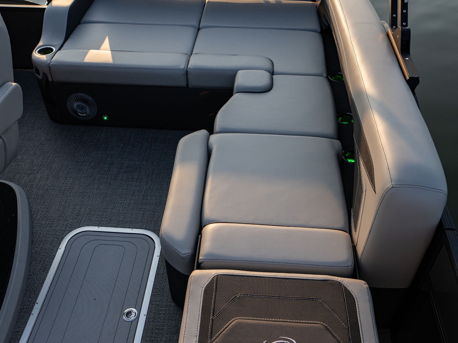There's something for everyone on the ultra-versatile, ultra-popular Ultra-Lounge. The rear-lounge turns into 5 different seating positions giving you flexibility in any situation. The front chaise lounges are the cherry on top when it comes to seating everyone on board comfortably.