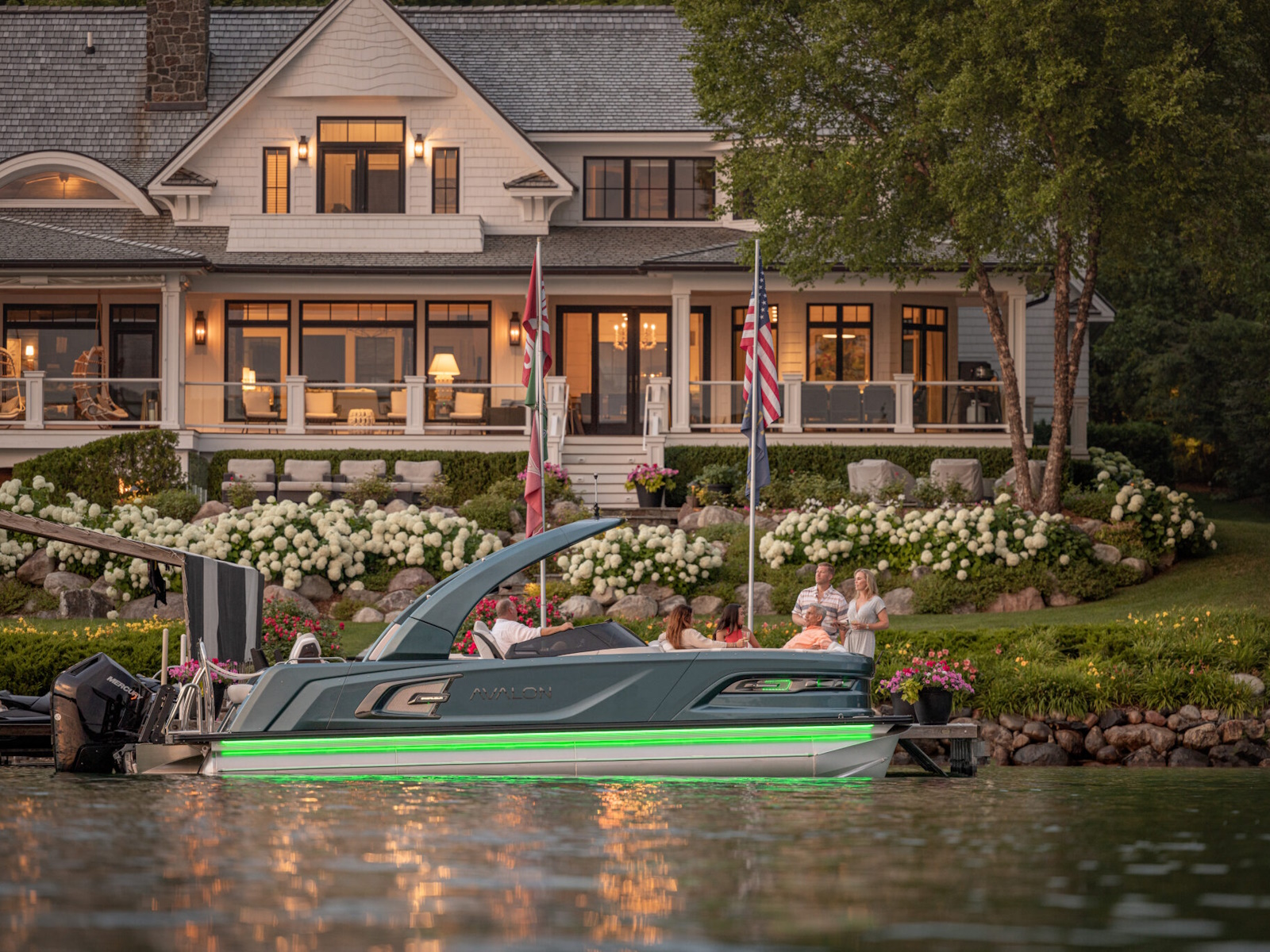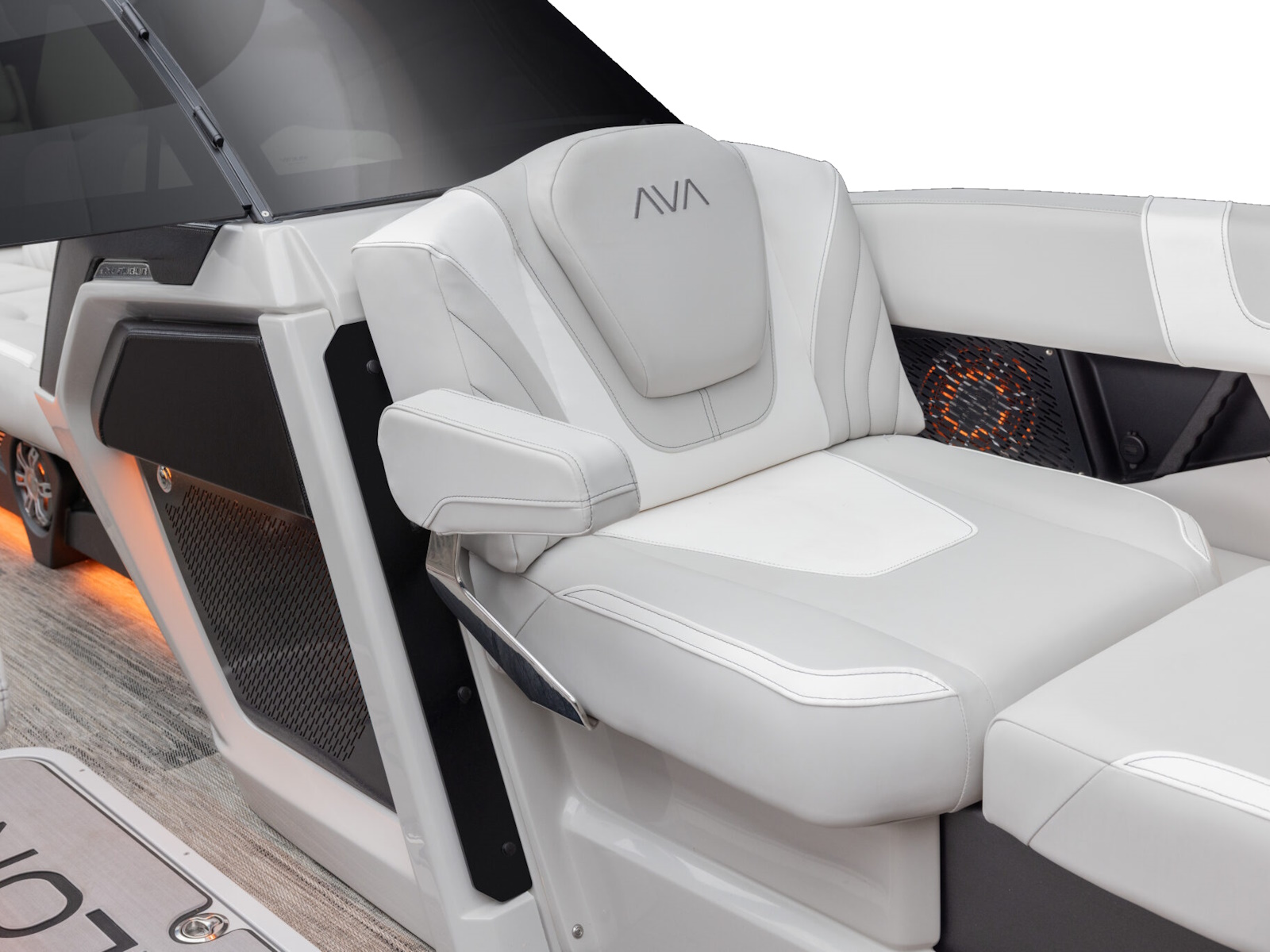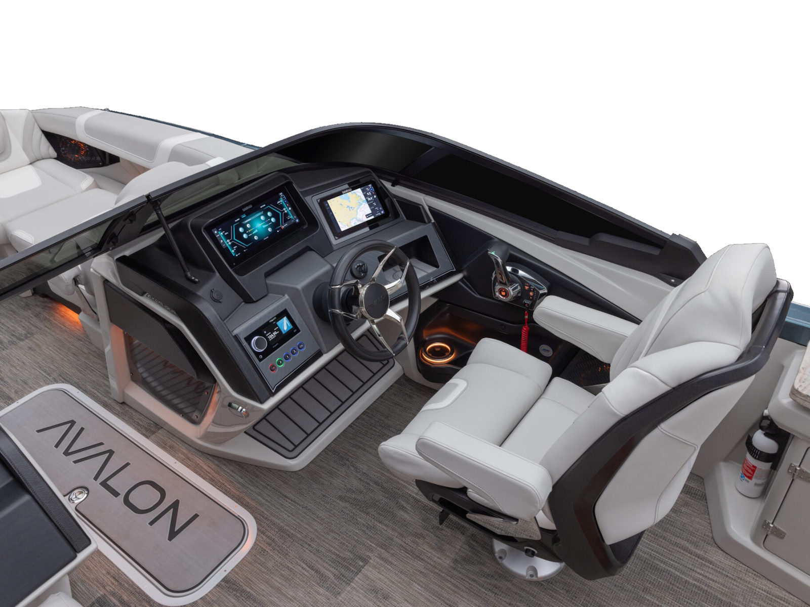 Courtesy light on helmstand | RGB lighted cup holders & mood lighting | USCG navigation lights | RGB exterior EGT docklights | RGB rubrail lights | RGB rear underwater lights