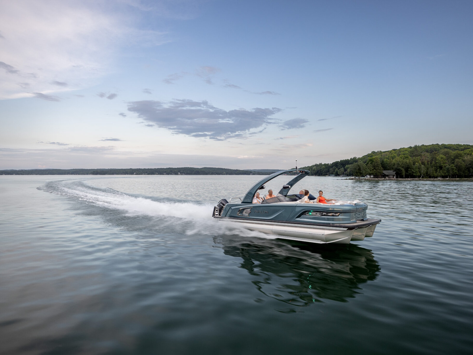 - Waveglider triple 27” pontoons w/high performance lifting fins, ski tow bar & aluminum waveshield