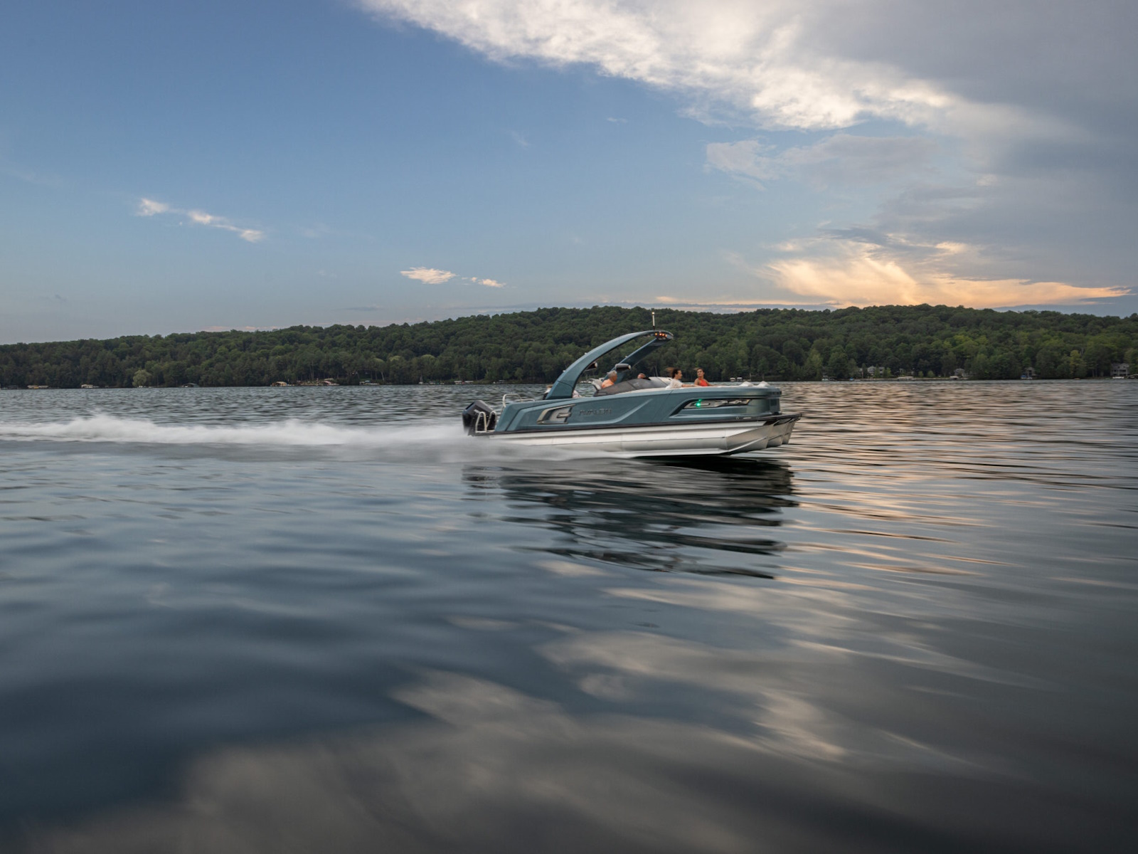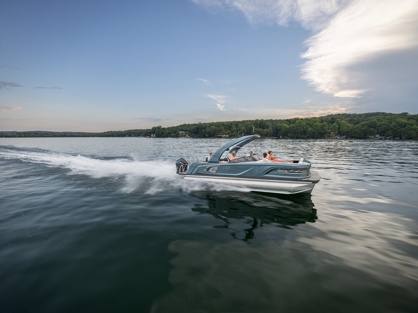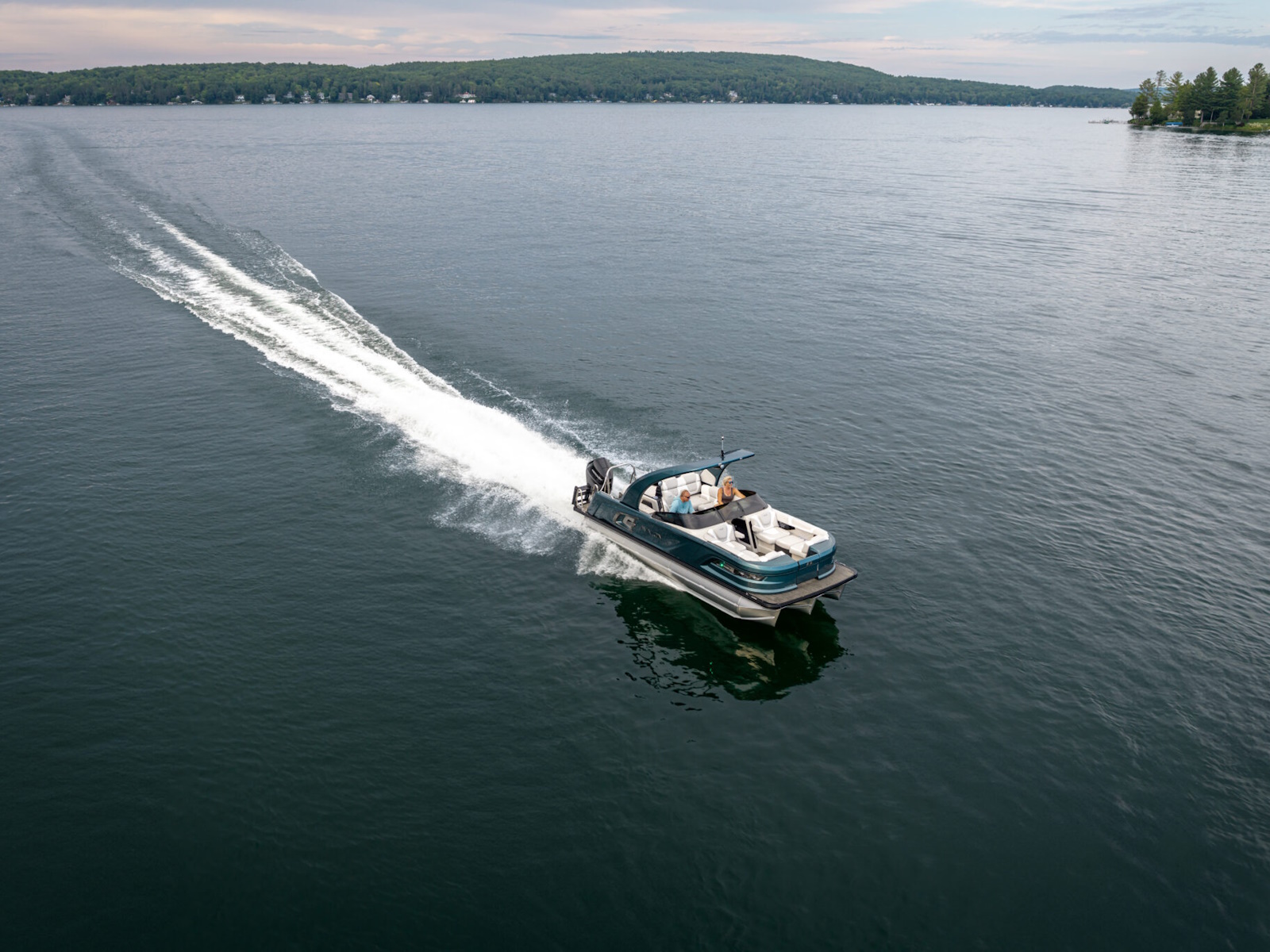 - Waveglider triple 27” pontoons w/high performance lifting fins, ski tow bar & aluminum waveshield