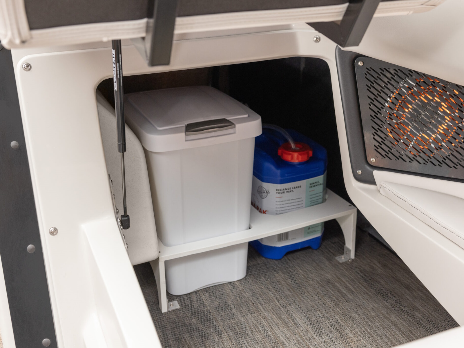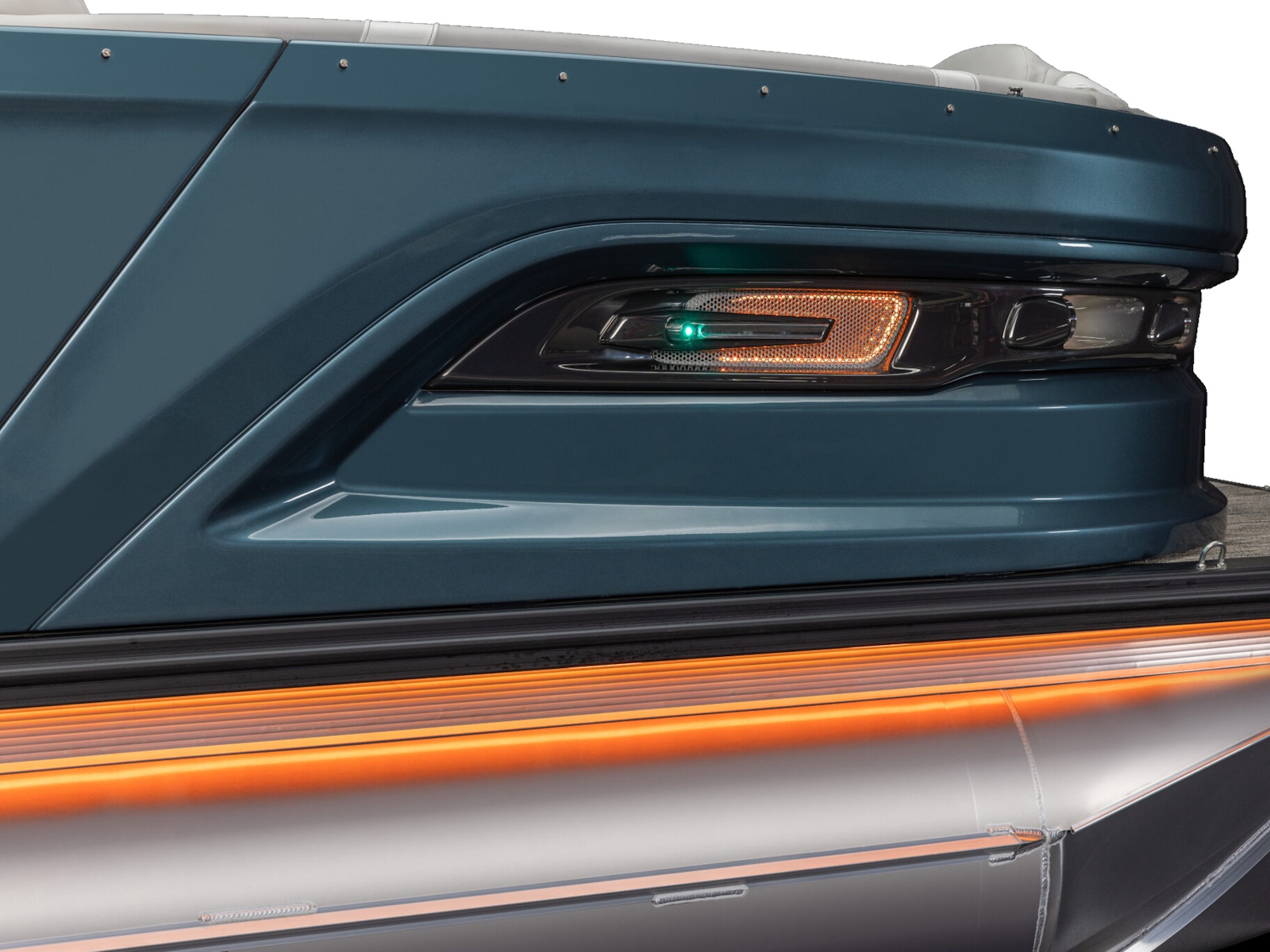 Courtesy light on helmstand | RGB lighted cup holders & mood lighting | USCG navigation lights | RGB exterior EGT docklights | RGB rubrail lights | RGB rear underwater lights